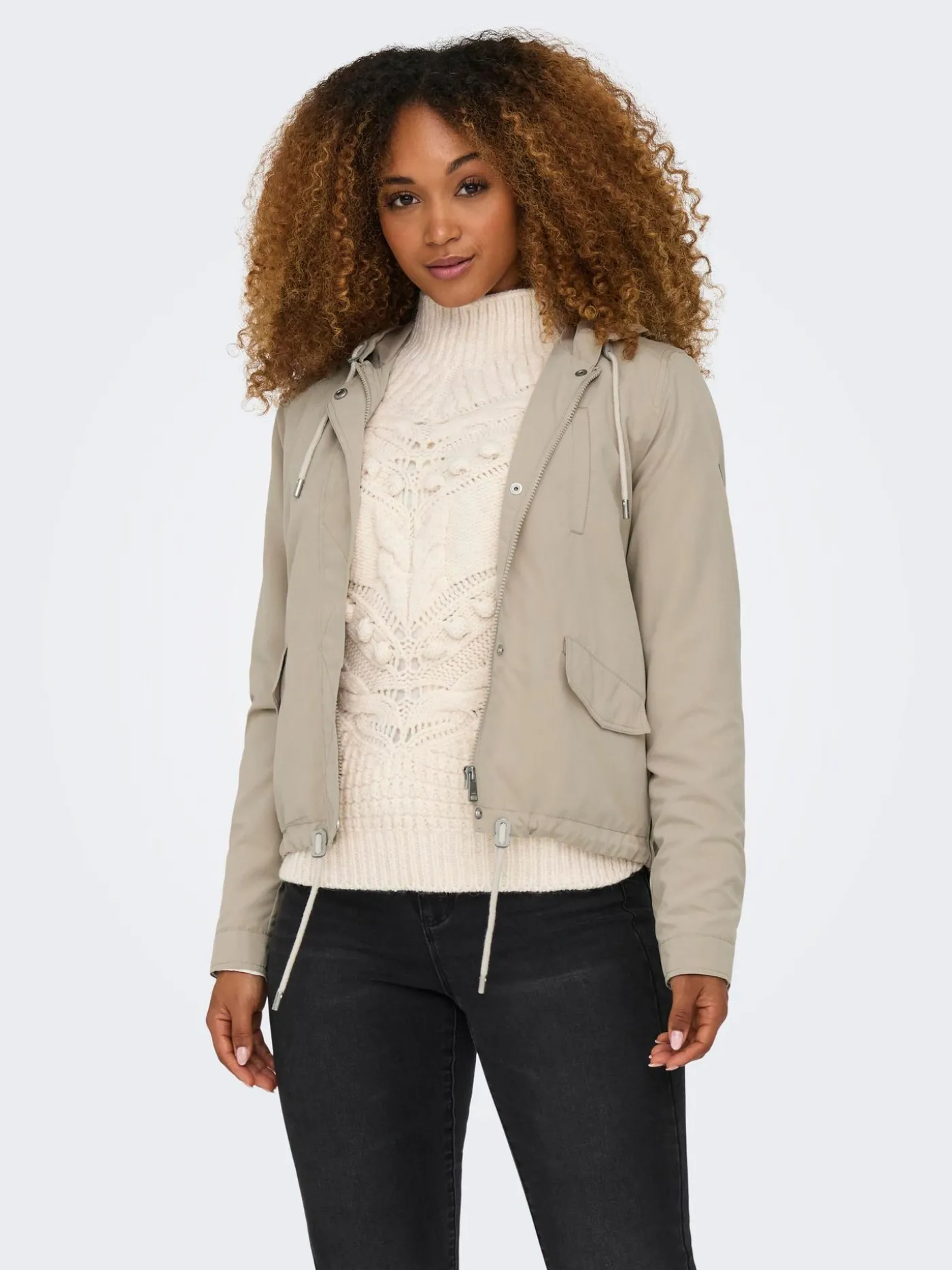 Een korte parka in een mooie beige kleur van het merk Only. De jas heeft een borstzak, twee steekzakken, een tunnelkoord en een capuchon. Kortom, deze jas is erg functioneel. Dit item is er in meerdere kleuren.