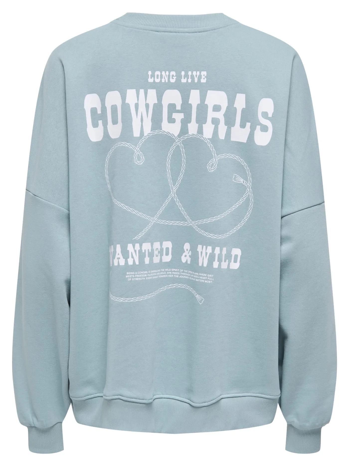Statement maken? Deze sweater doet het voor je. De opvallende rugprint met de tekst “Long Live Cowgirls” “Wanted & Wild” geeft deze trui een speelse, stoere uitstraling. Op de voorkant van de sweater staat nog een keer de tekst “Wanted & Wild”. De sweater is afgewerkt met een ronde hals en geribde boorden. Combineer met een jeans en laarsjes voor een western geïnspireerde look.