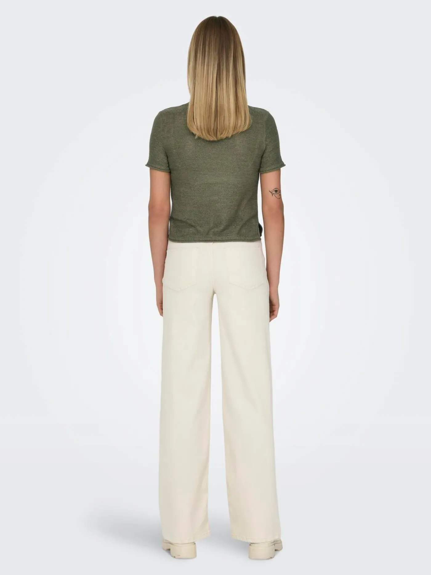 Donkergroen gebreid shirt van Only. Dit item heeft een ronde hals, korte mouwen en is afgewerkt met ribboorden. Het item bevat stretch waardoor hij zeer comfortabel draagt. De top is verkrijgbaar in meerdere kleuren!