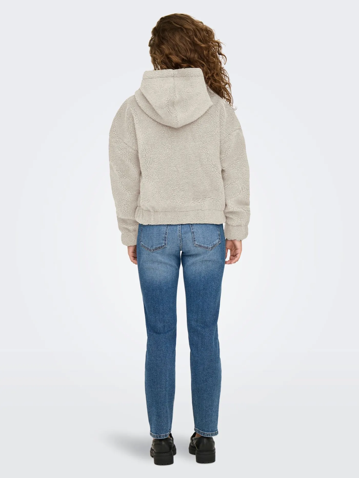 Blijf warm én stijlvol met deze ultra zachte teddy jas van Only. Deze cosy jas is uitgevoerd in een crèmewitte kleur en gemaakt van heerlijk zachte teddy stof die comfort en warmte biedt tijdens koude dagen. De jas heeft een casual, iets losvallende pasvorm, ruime klepzakken aan de voorkant en een verstelbare capuchon met trekkoord. De boorden aan de mouwen en onderkant zijn afgewerkt met een elastische band, waardoor deze goed aansluiten.Combineer met een jeans en chunky sneakers voor een stoere streetstyle look, of draag het over een truijurk voor een warme en vrouwelijke outfit.