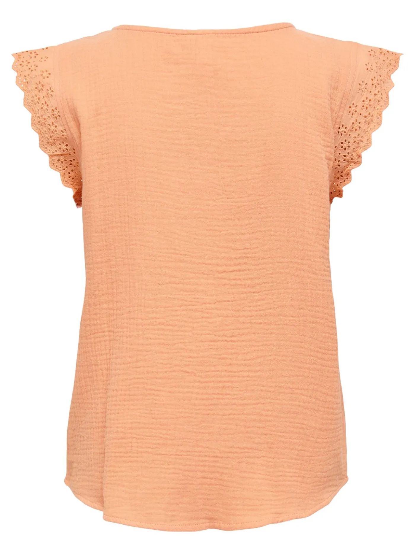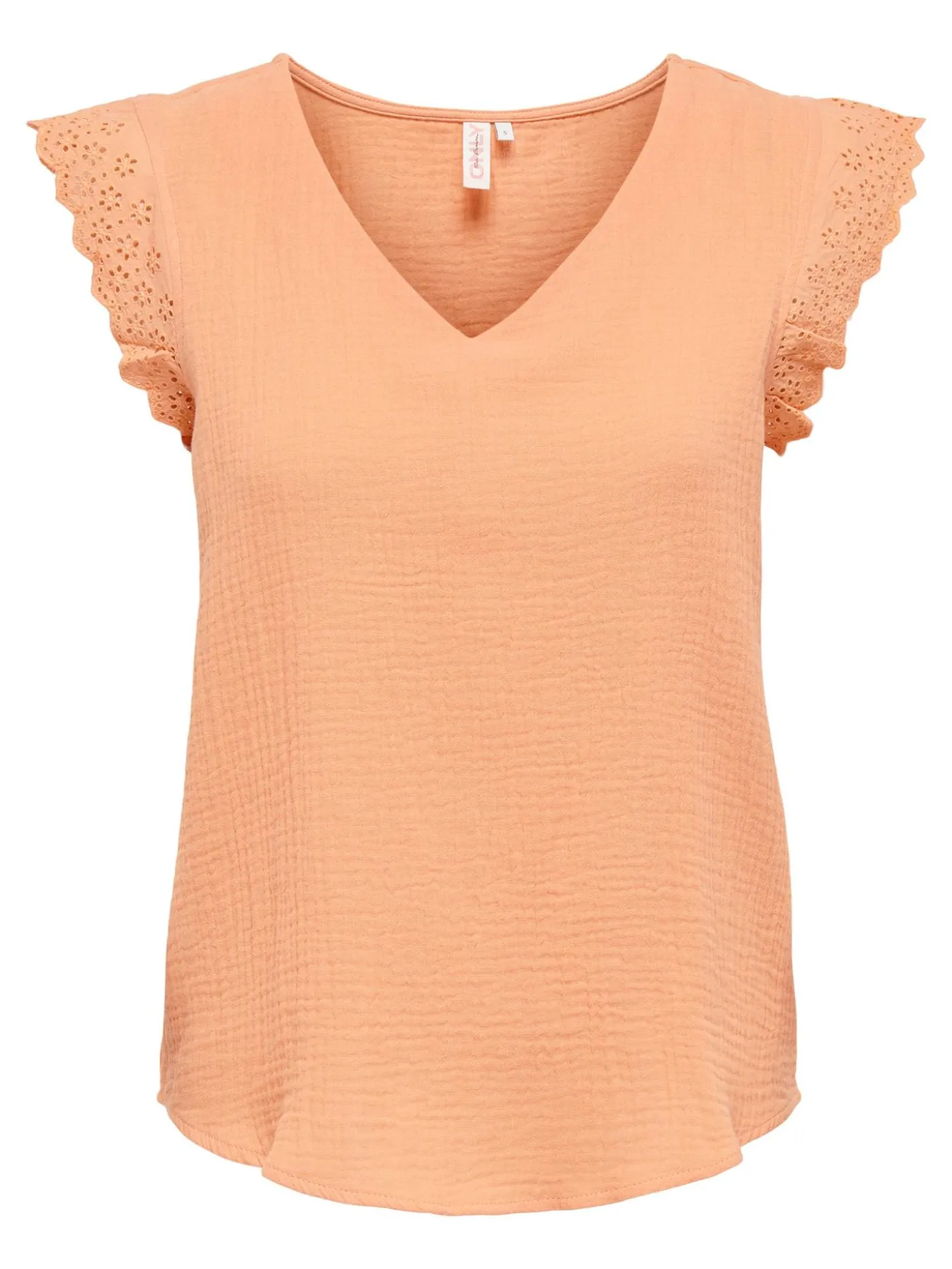 Leuke top van Only in de kleur oranje. Dit item heeft een V-hals en kapmouwtjes met broderie details. De top is gemaakt van katoen en draagt zeer comfortabel.