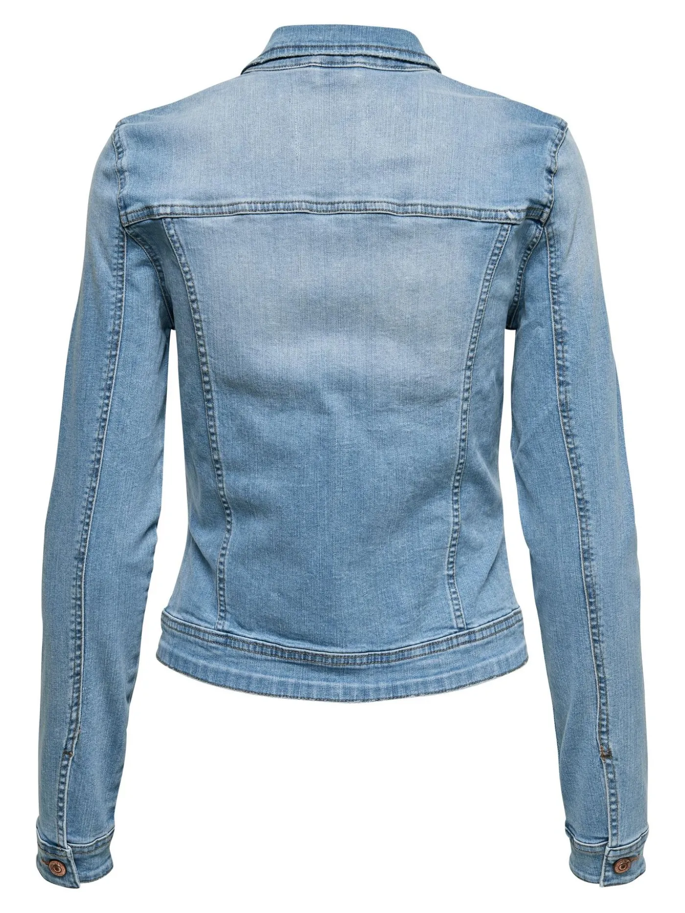 Spijkerjasje van het merk Only. Het Jasje is licht van kleur en heeft een knoopsluiting, ook heeft het jasje twee borstzakken. Het valt goed te combineren met een leuke pantalon of een spijkerbroek voor een leuke denim look.