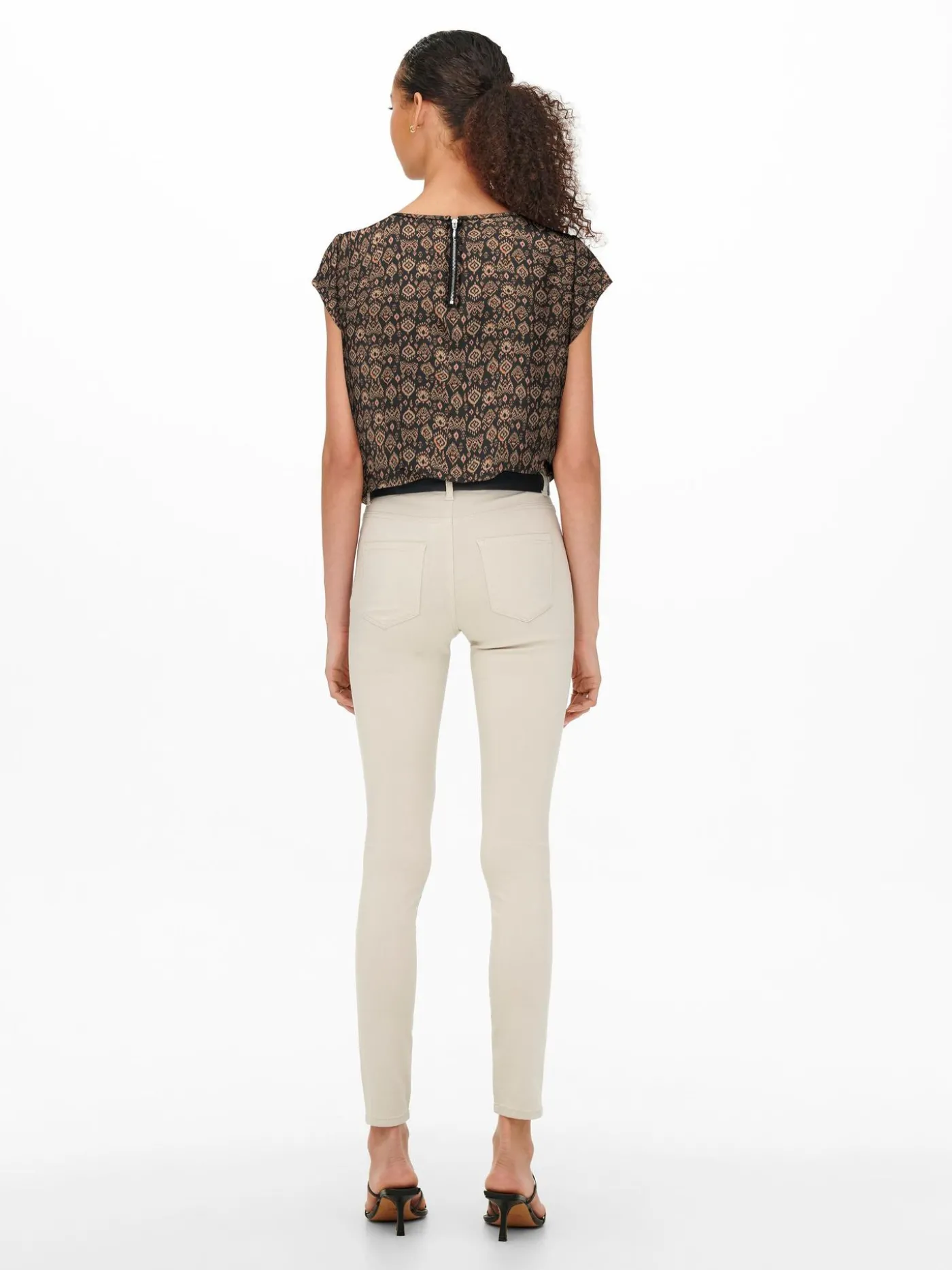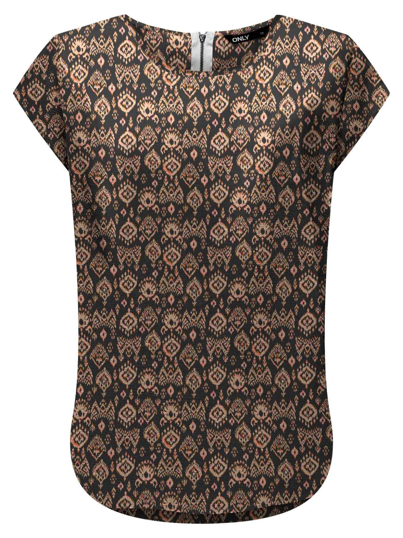 Wijdvallende top van Only met een ronde halslijn en korte mouwtjes. De top is voorzien van een all over print en heeft op de rug een ritssluiting.