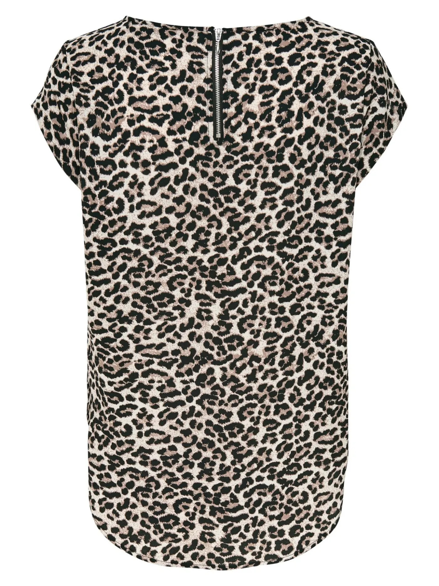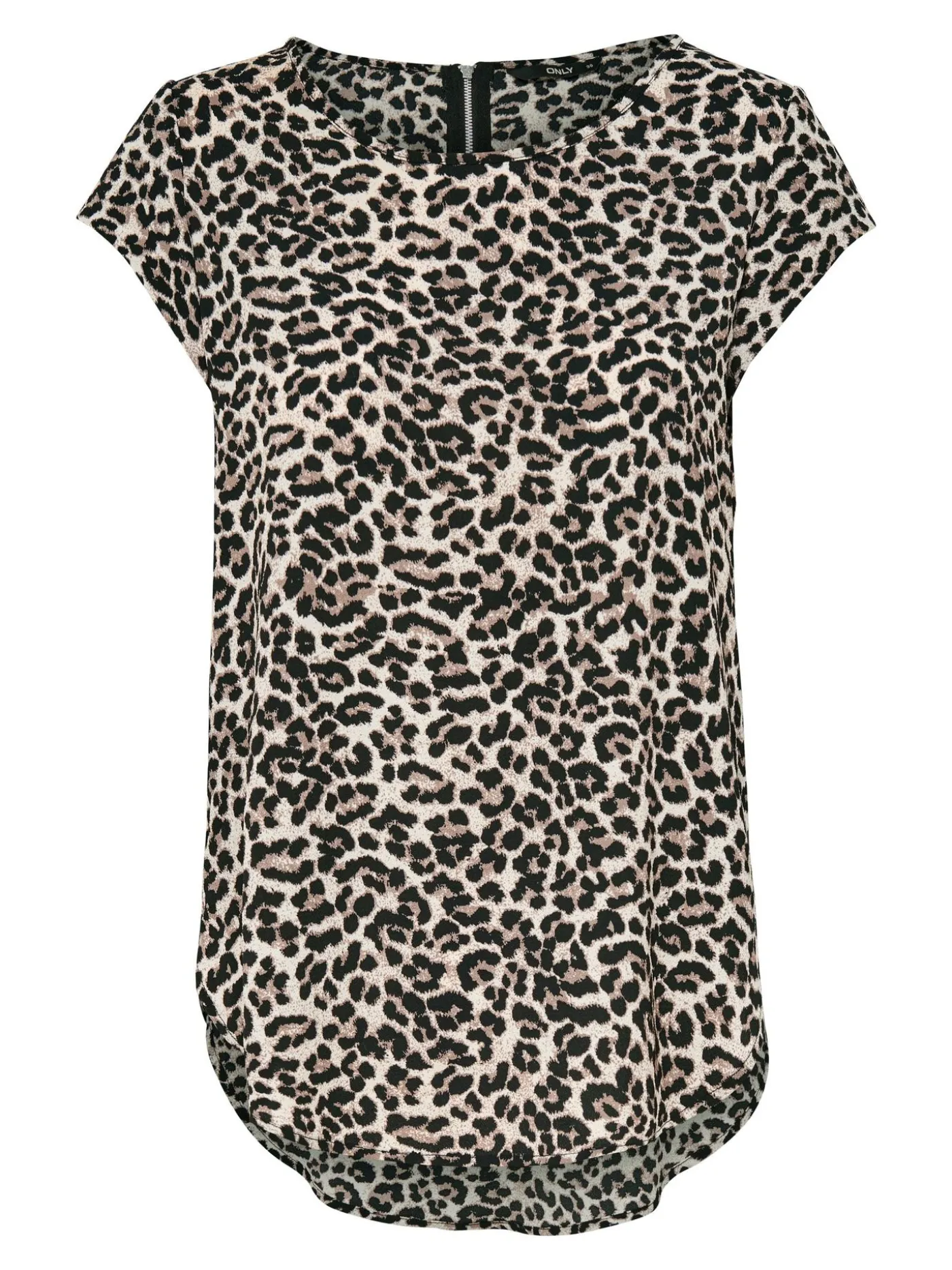 Wijdvallende top van Only met een ronde halslijn en korte mouwtjes. De top is voorzien van een all over print en heeft op de rug een ritssluiting.