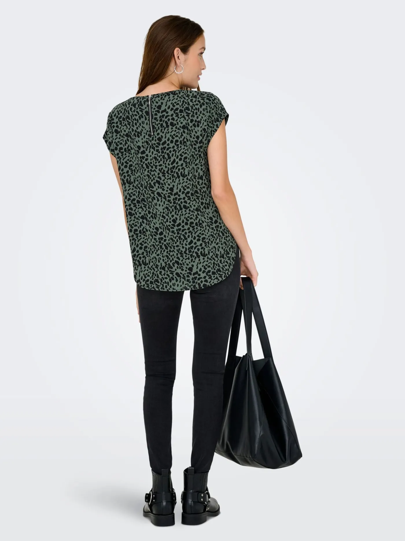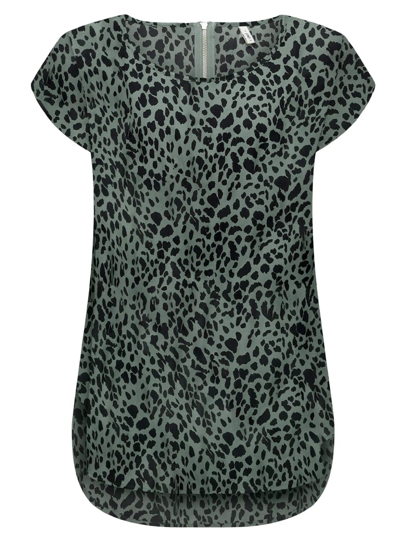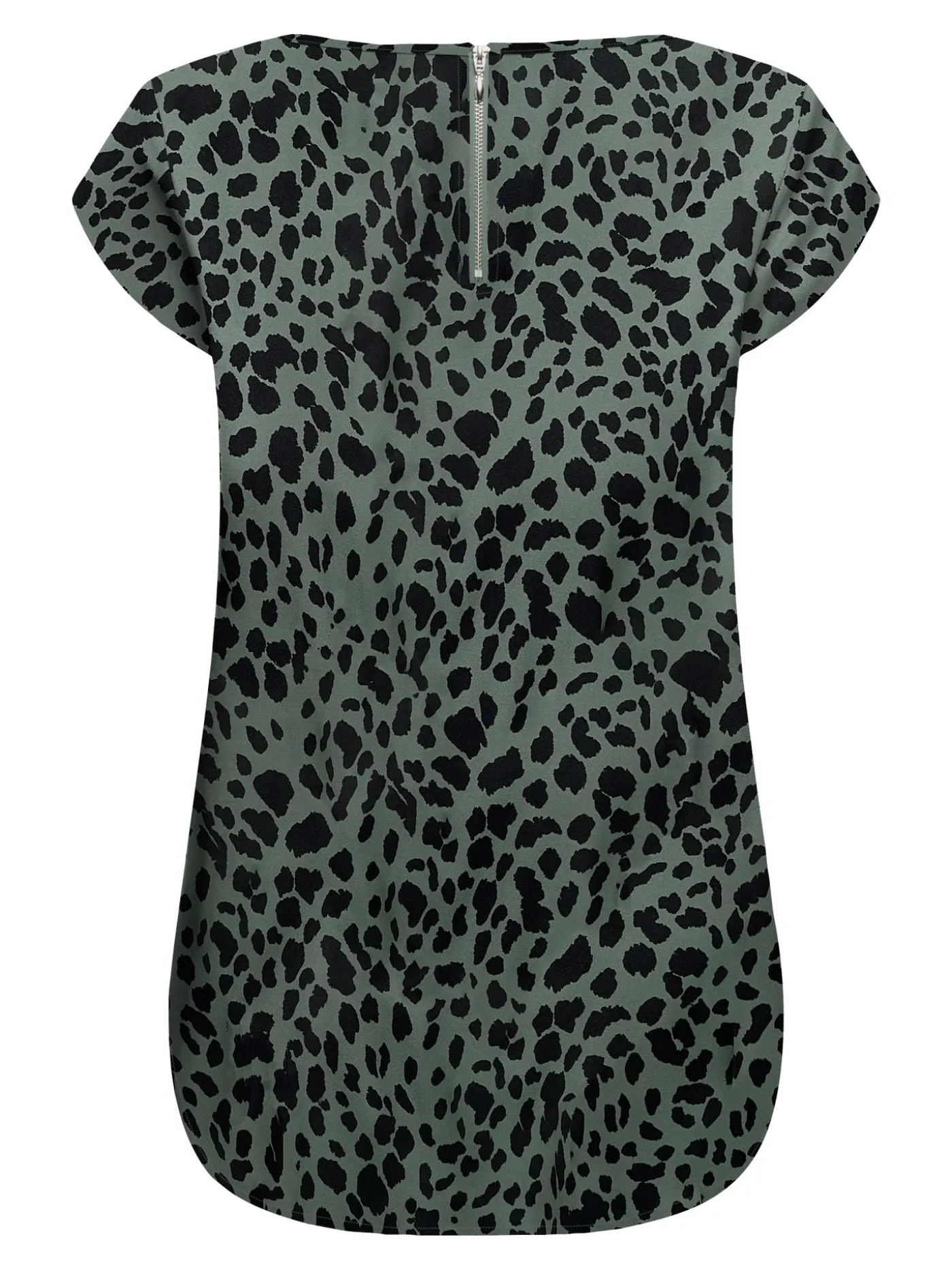 Ga voor een stoere en stijlvolle look met deze dames blouse met all-over luipaardprint. De blouse heeft een flatterende los vallende pasvorm met korte mouwen en een ronde hals. De legergroene basiskleur in combinatie met de zwarte print geeft een moderne twist aan de klassieke dierenprint. De subtiele zilverkleurige ritssluiting aan de achterkant maakt het aan- en uittrekken extra makkelijk. Ideaal voor zowel een casual als nette outfit.