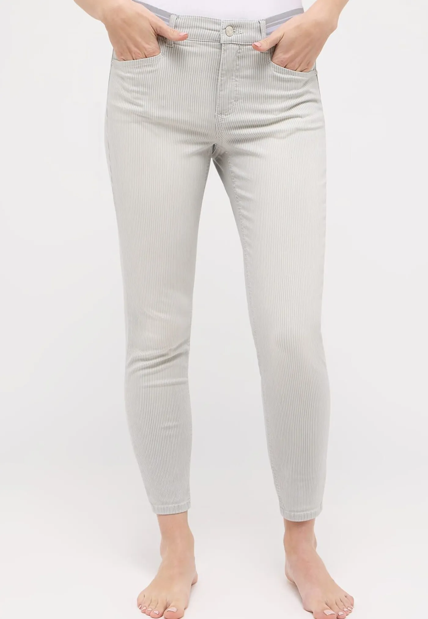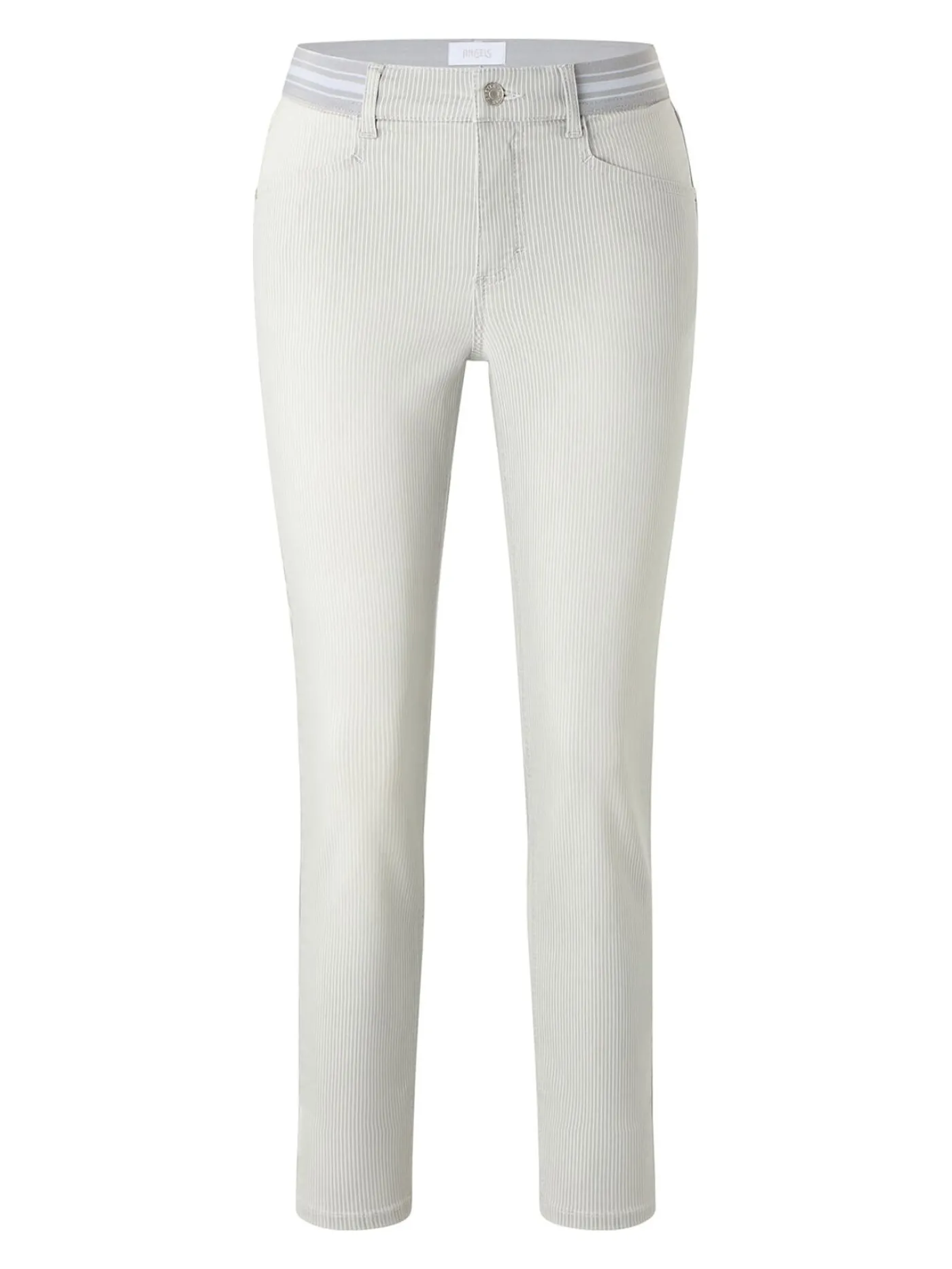 Deze broek van Angels heeft een streepjes patroon. De broek heeft een elastieke band rond de middel.