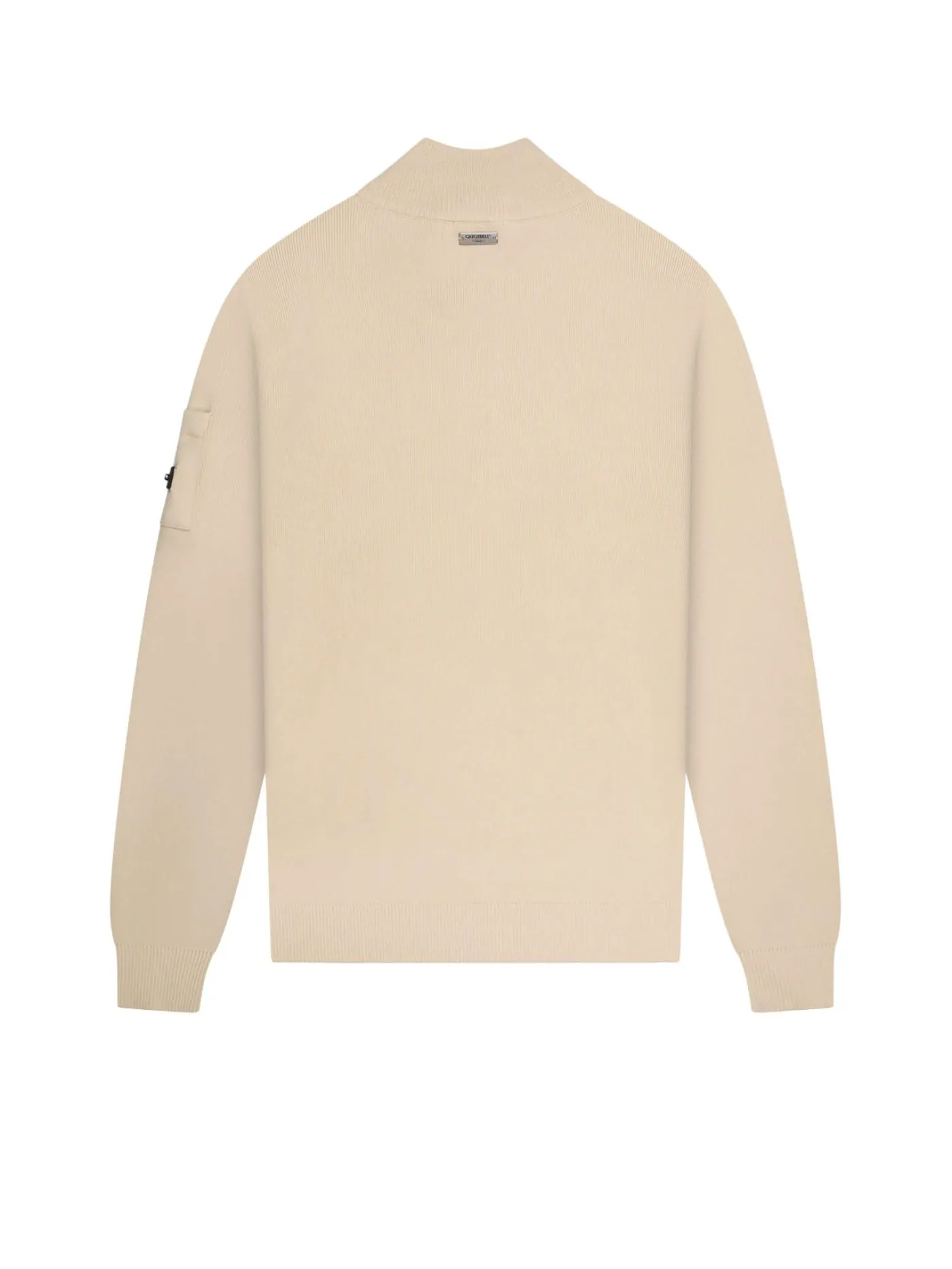 Deze beige half zip sweater van Quotrell voor heren combineert stijl en comfort in één. Op de linker mouw staat het kenmerkende Quotrell-logo subtiel geborduurd, wat zorgt voor een moderne uitstraling. De regular fit maakt hem comfortabel om te dragen en perfect voor een nette, casual look. Ideaal te combineren met een jeans of pantalon.