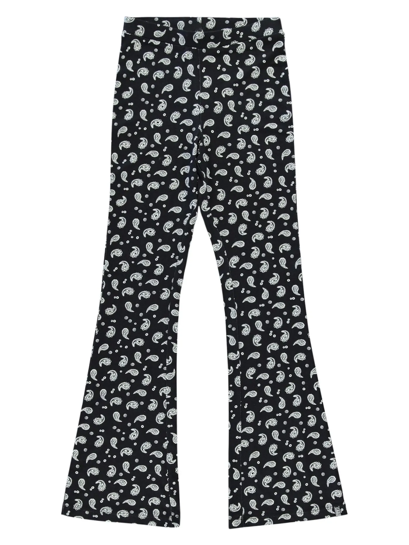 Zwarte flared fit broek van Cars Jeans voor meisjes. Deze legging is gemaakt van een zachte en elastische stof waardoor hij heerlijk comfortabel draagt. De broek heeft een witte all over print en een high waist model.