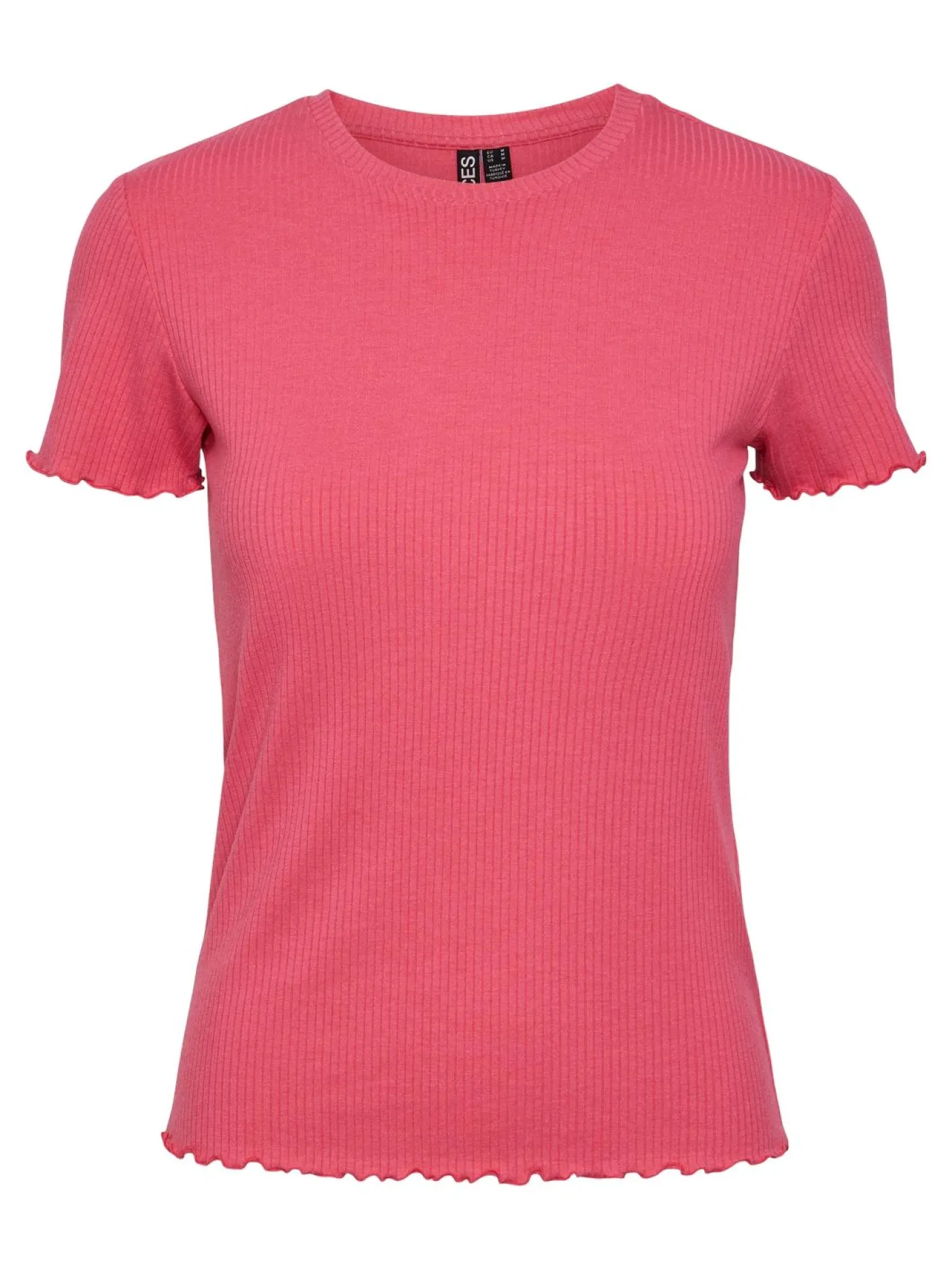 Dit basic roze T-shirt van Pieces heeft een ronde hals en korte mouwen. Het item is gemaakt van een rekbaar ribstofje waardoor die heerlijk comfortabel draagt. Het T-shirt heeft een Slim fit model en korte ruches mouwen.