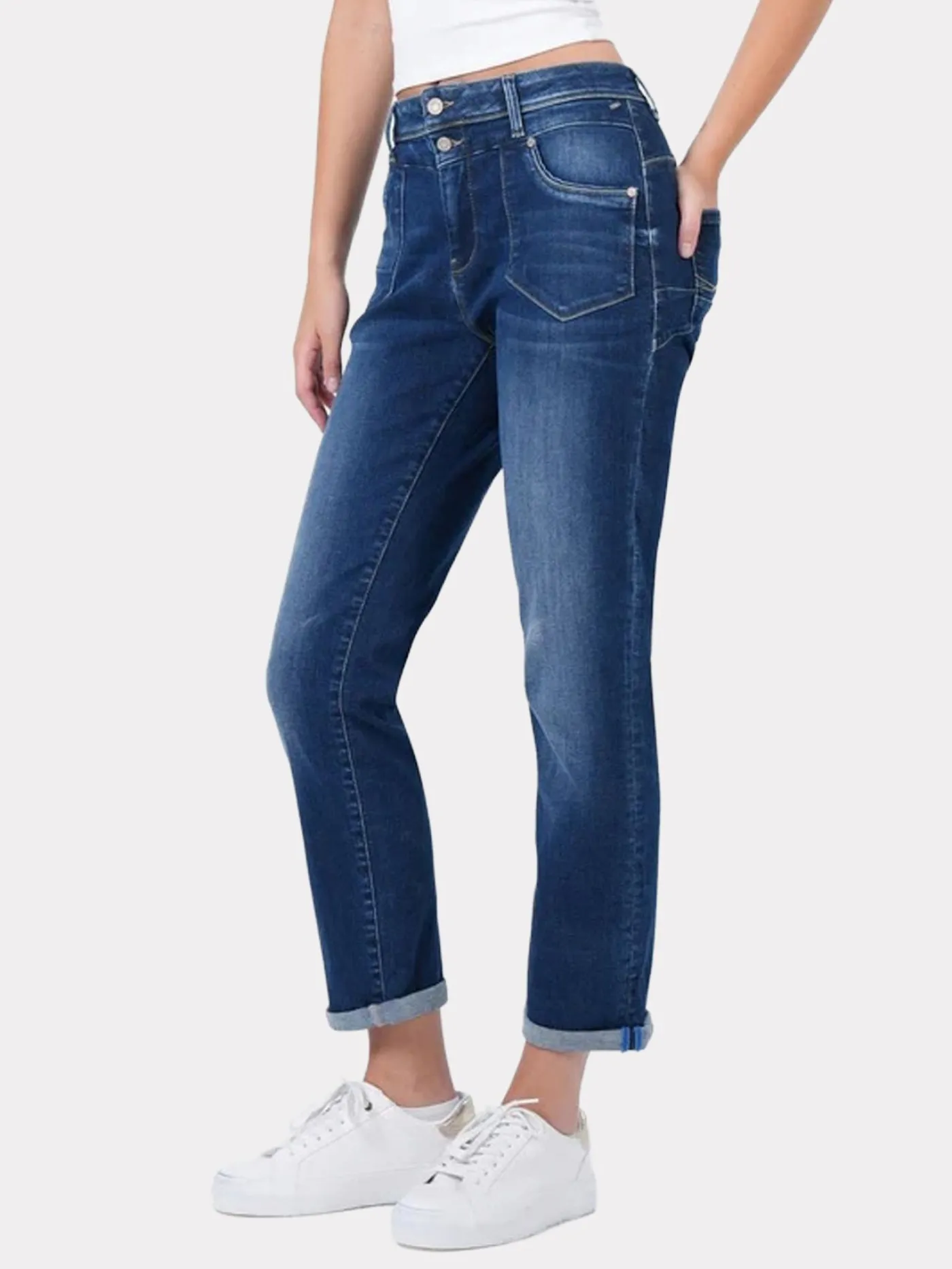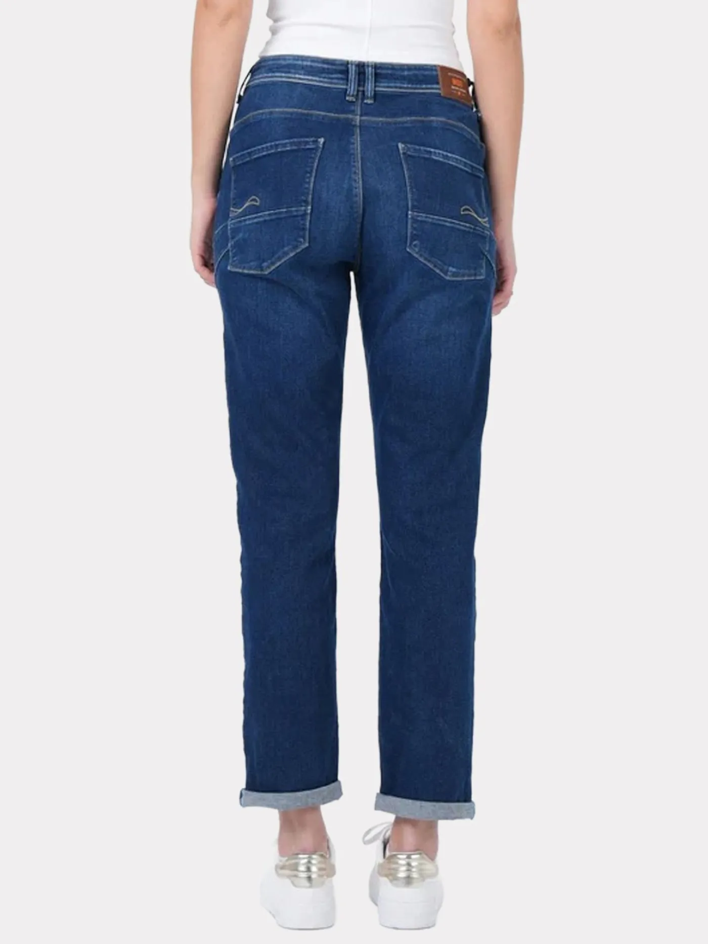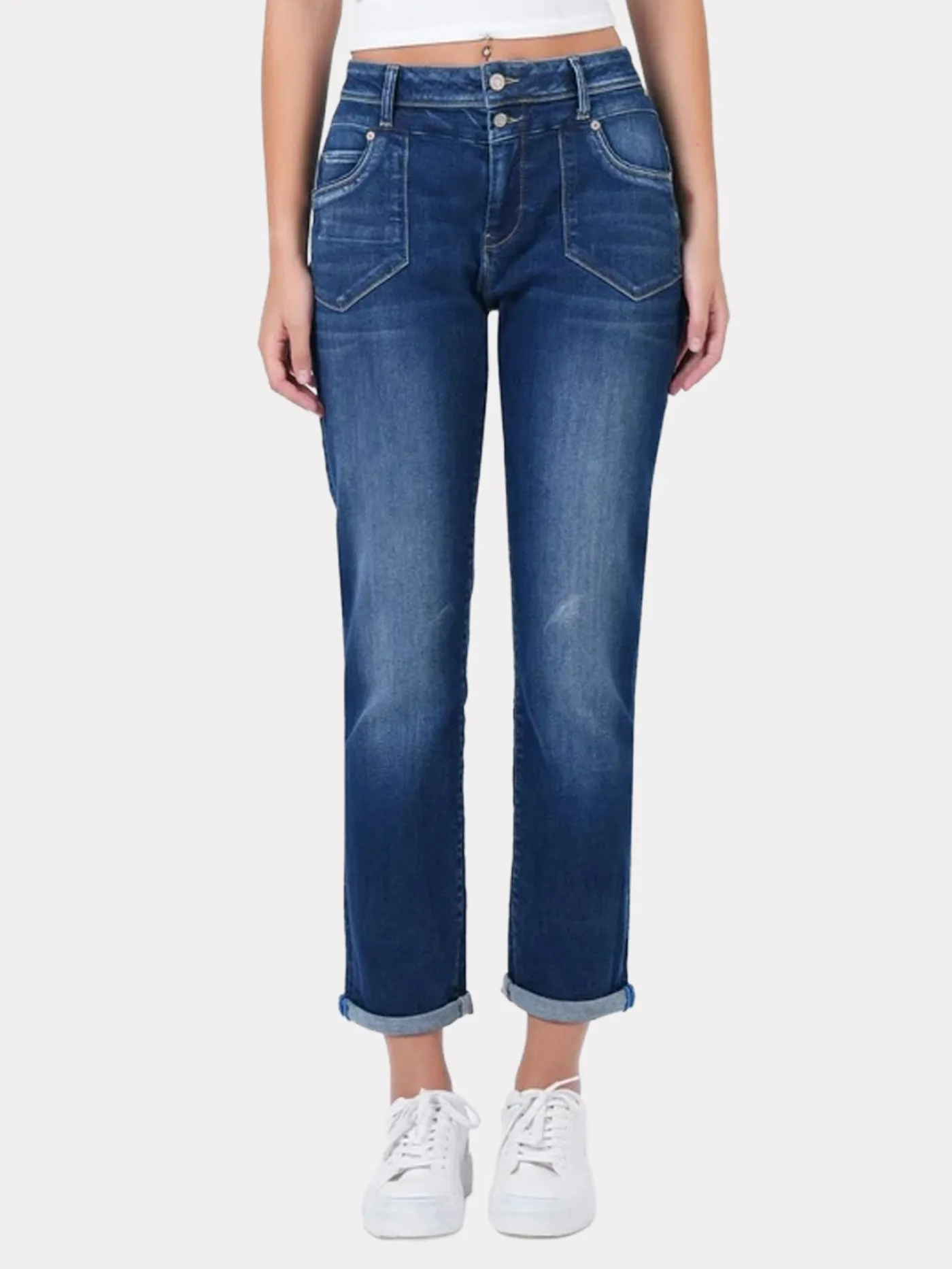 Deze donkerblauwe jeans van M.O.D. is een tijdloze klassieker die elke vrouw in haar garderobe moet hebben. De strakke pasvorm en het rijke blauwe design zorgen voor een slanke uitstraling, terwijl de stof een fijne stretch biedt voor ultiem comfort. Of je nu voor een casual of een meer geklede look gaat, deze jeans is veelzijdig genoeg om te combineren met alles van een T-shirt tot een blouse. De perfecte keuze voor elke gelegenheid.