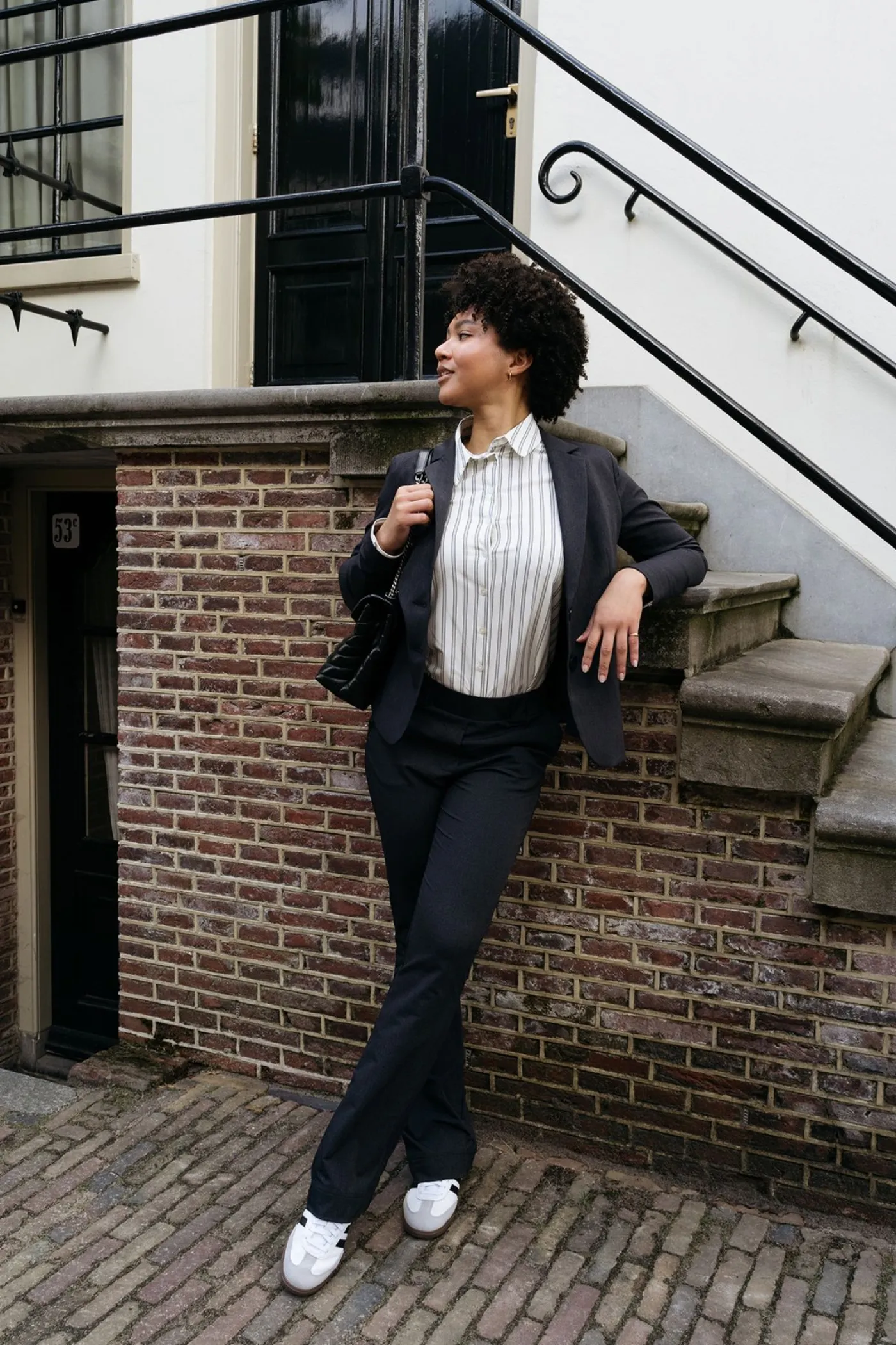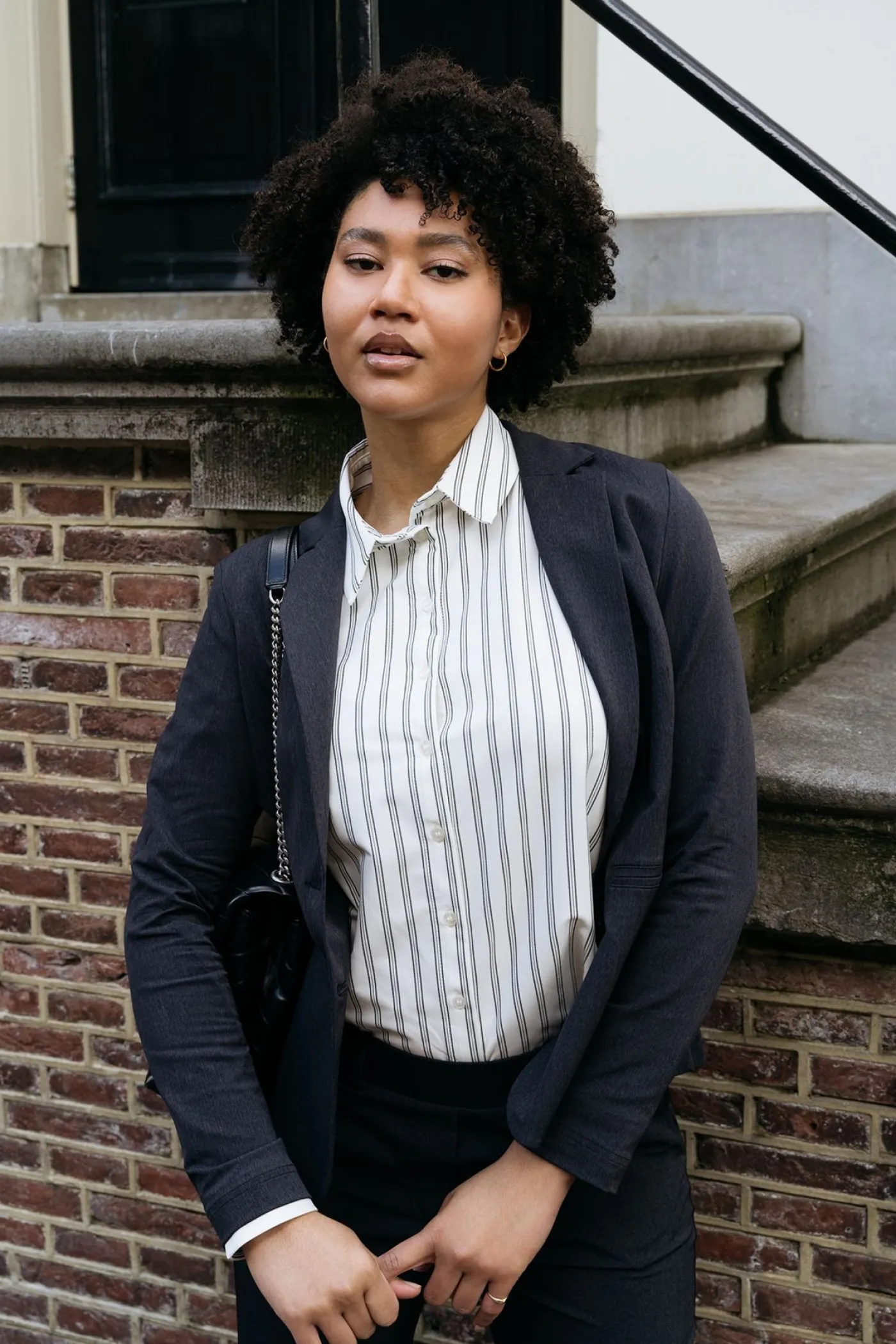 Deze blazer van &Co Woman heeft een schouder vulling en een knoopsluiting. Deze blazer is wat korter. Je kan deze blazer combineren met een t-shirt en een pantalon voor een leuke maar ook nette outfit.