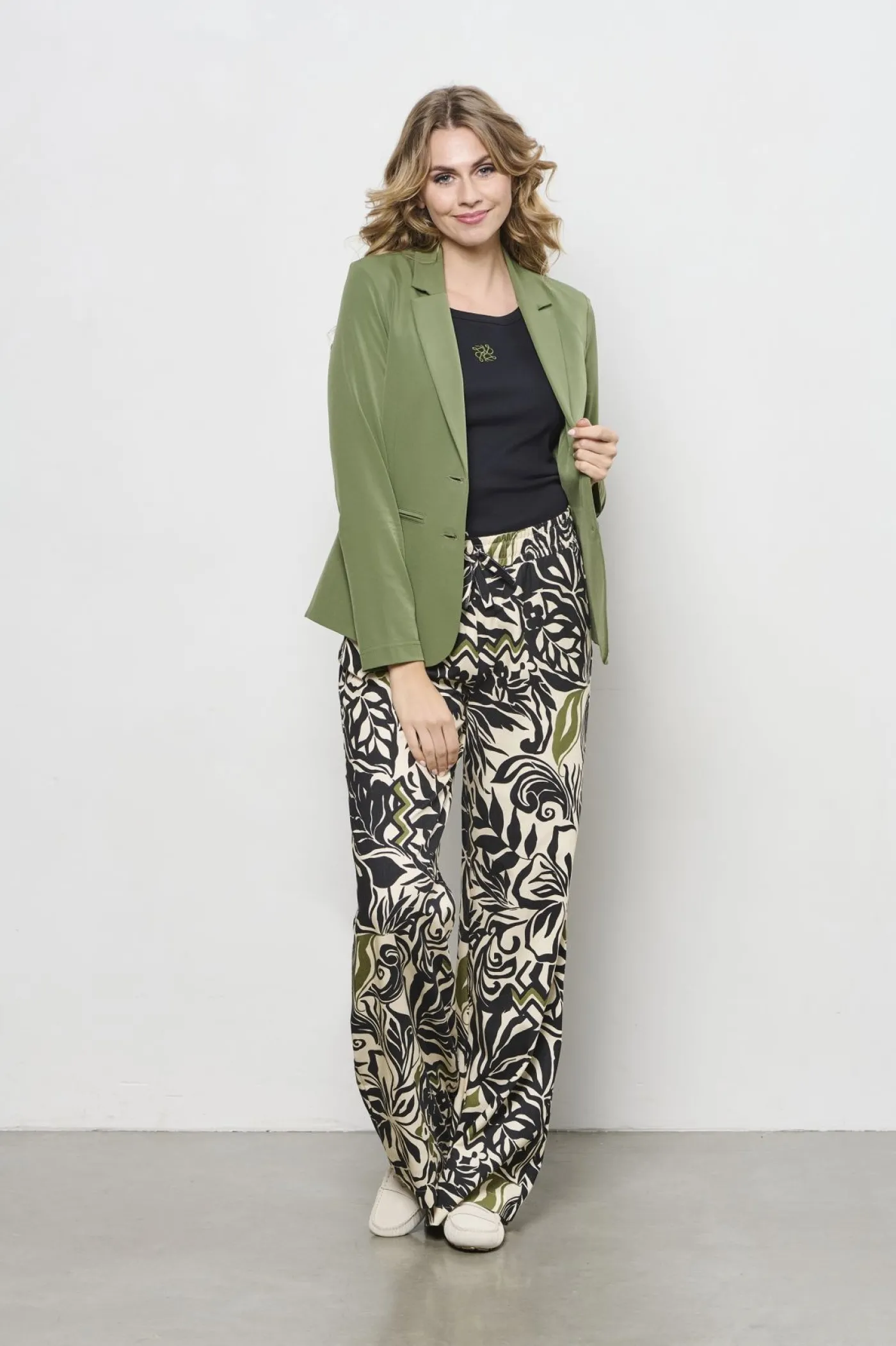 Deze prachtige olijf groene blazer van &Co Woman is een musthave voor elk seizoen. De blazer is gemaakt vantravelstof, dus de stof is lekker stretchy en kreukt niet. De blazer heeft lange mouwen en heeft een knoopsluiting en nepzakken aan de voorkant. Je kunt de blazer combineren met de bijpassende items zoals bijvoorbeeld dePenelope travelof dePenny travel.