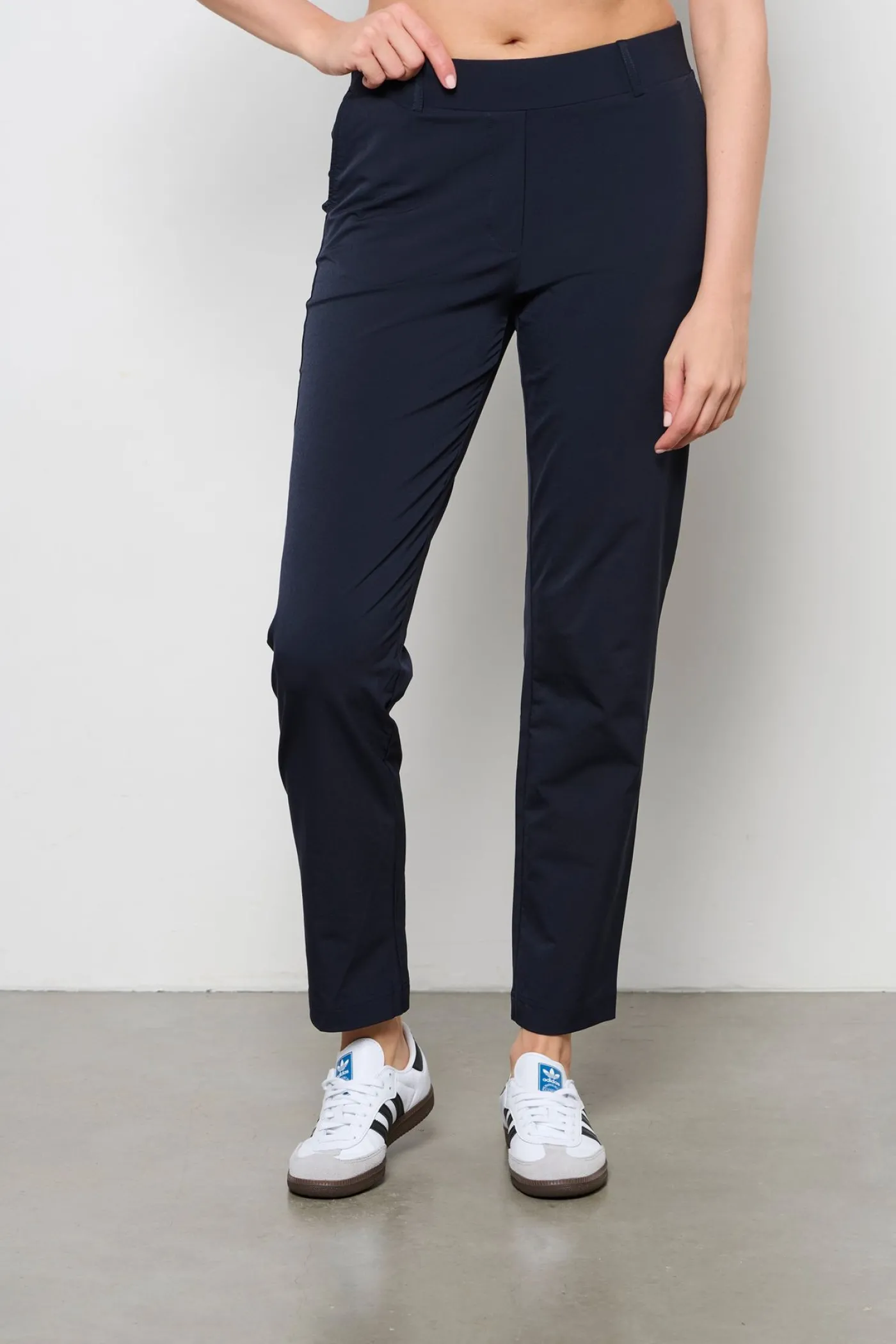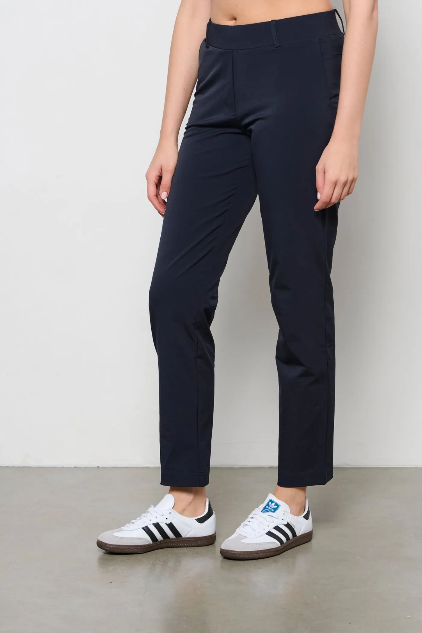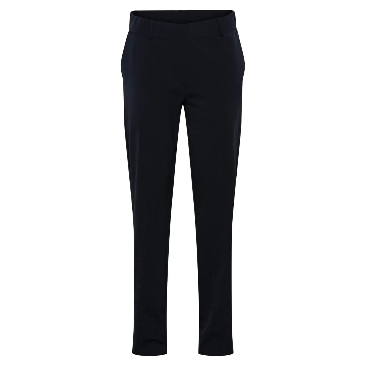 Straight fit travel kwaliteit broek van het merk &Co Woman in donkerblauw. Dit item heeft een gladde tailleband met riemlussen en twee steekzakken aan de voorzijde. Aan de achterzijde heeft dit model ook twee steekzakken met klep- en knoopsluiting.