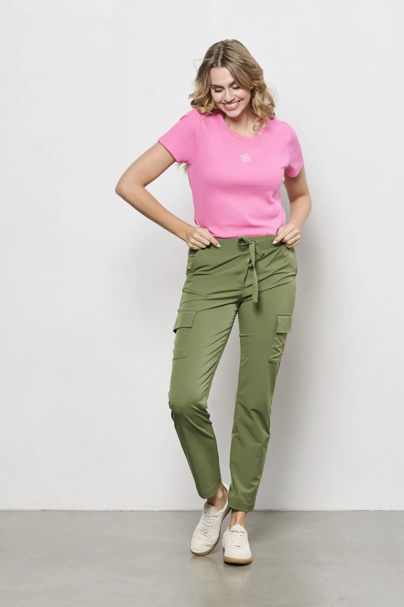 Deze toffe broek is van de nieuwste collectie van &Co Woman. De broek is gemaakt vantravelstofen heeft zakken aan de zijkant van het been, en steekzakken aan de voorkant. De broek heeft een elatische tailleband met een koord waarmee je de broek strakker kunt maken. Door de elastische stof is de broek comfortabel om te dragen en is het item dus een musthave voor in elke kledingkast!
