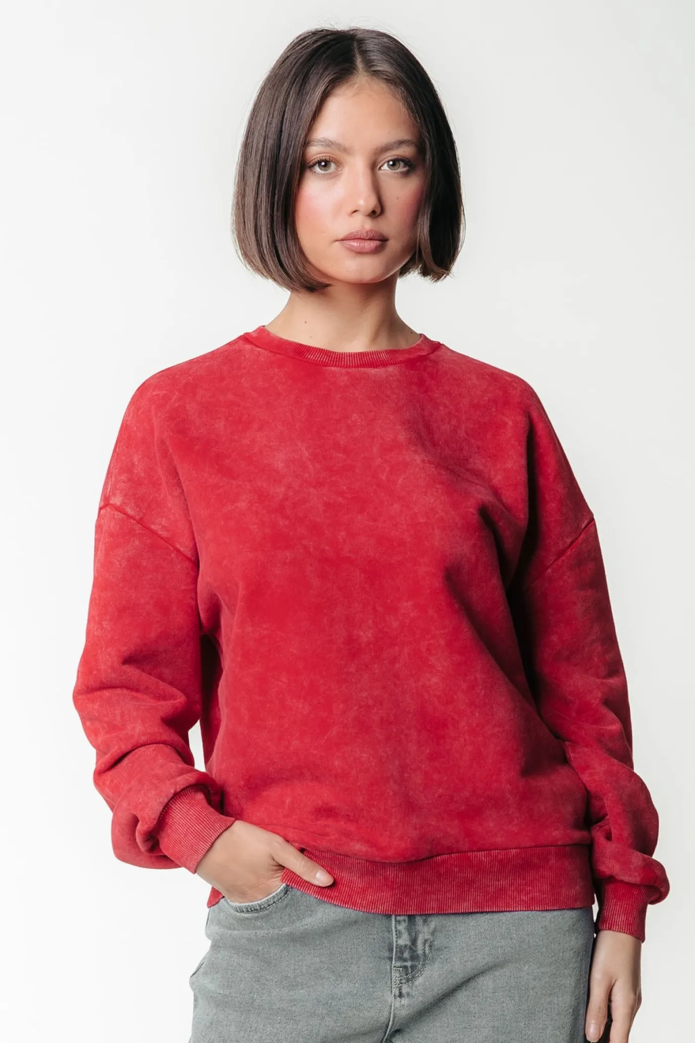 Deze rode sweater van Colourful Rebel heeft een gewassen look die zorgt voor een stoere, vintage uitstraling. De trui is gemaakt van een zachte katoenmix en heeft een relaxed fit met verlaagde schoudernaden voor een nonchalante vibe. De brede boorden aan de mouwen en zoom zorgen voor een fijne pasvorm en extra comfort. Door het eenvoudige design is hij eindeloos te combineren, van jeans tot joggers. Perfect voor dagen waarop je casual en toch stijlvol voor de dag wilt komen. Een echte must-have voor je everyday look.