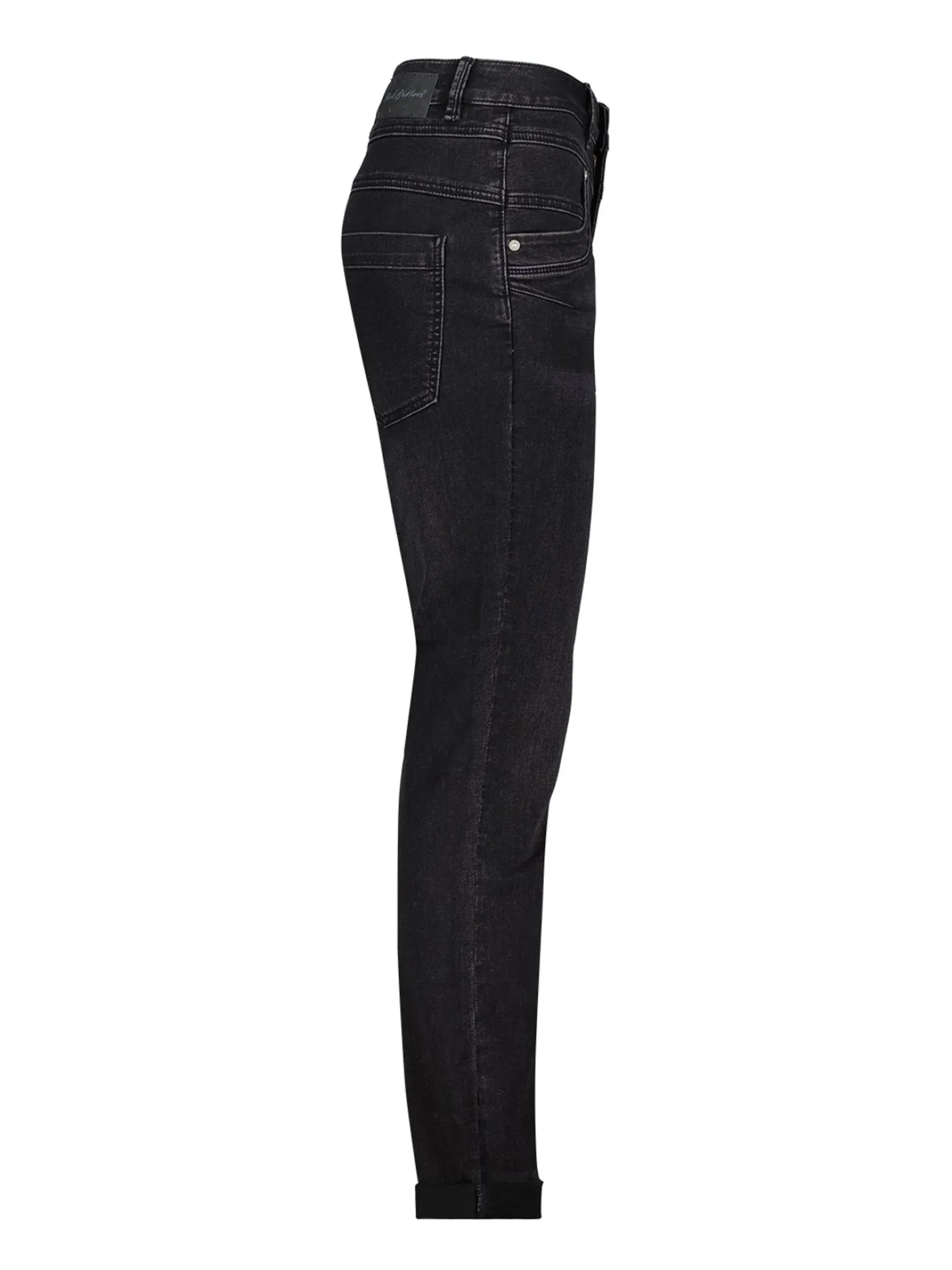Zwarte 5-pocket Red Button Broek met een knoop-en ritssluiting. Rol de onderkant van de pijpjes op voor een leuk detail en combineer met een mooie trui of T-shirt!