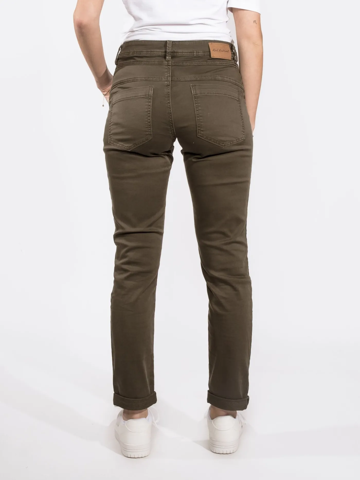 Deze comfortabele relax jog broek van Red Button heeft een Relaxed fit en een medium hoge taille. De broek heeft een donkergroene kleur en is voorzien van zakken aan zowel de voor als achterkant. De broek is gemaakt van een comfortabele stretch stof. Dit geeft de broek extra draagcomfort.