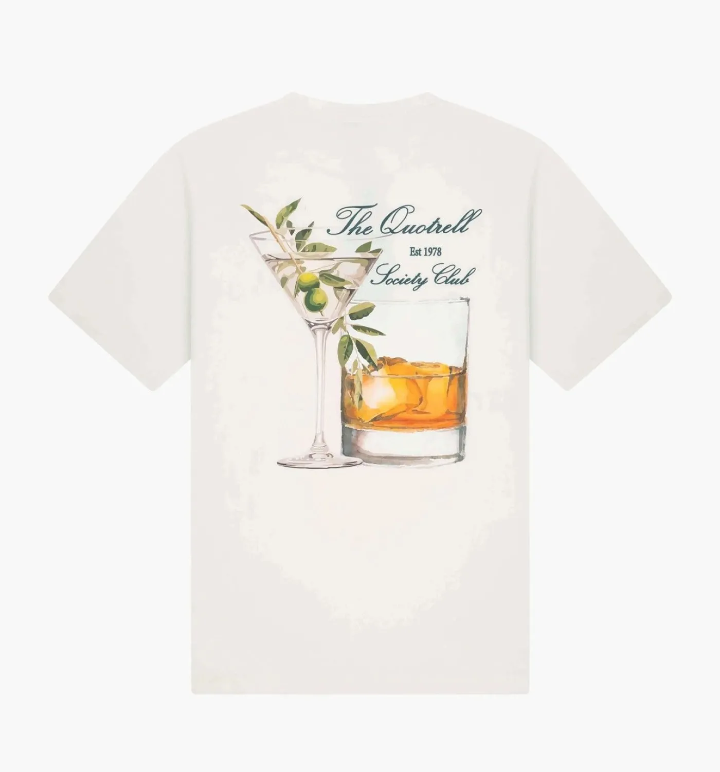 Wit T-Shirt voor heren van het merk Quotrell. Het item is gemaakt van 100% katoen. Hij heeft een ronde hals, korte mouwen en een oversized pasvorm voor ultiem comfort. De 2 drankjes op de achterkant geven een trendy touch.