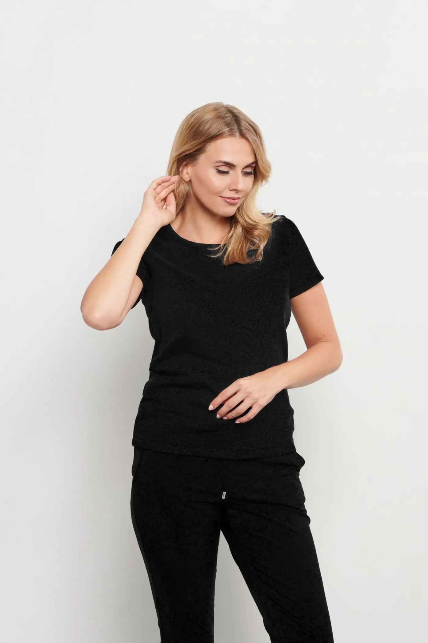 Dit basic zwarte t-shirt van &Co Woman is een echte musthave voor elke kledingkast. Dit shirt heeft een ronde hals en korte mouwen.