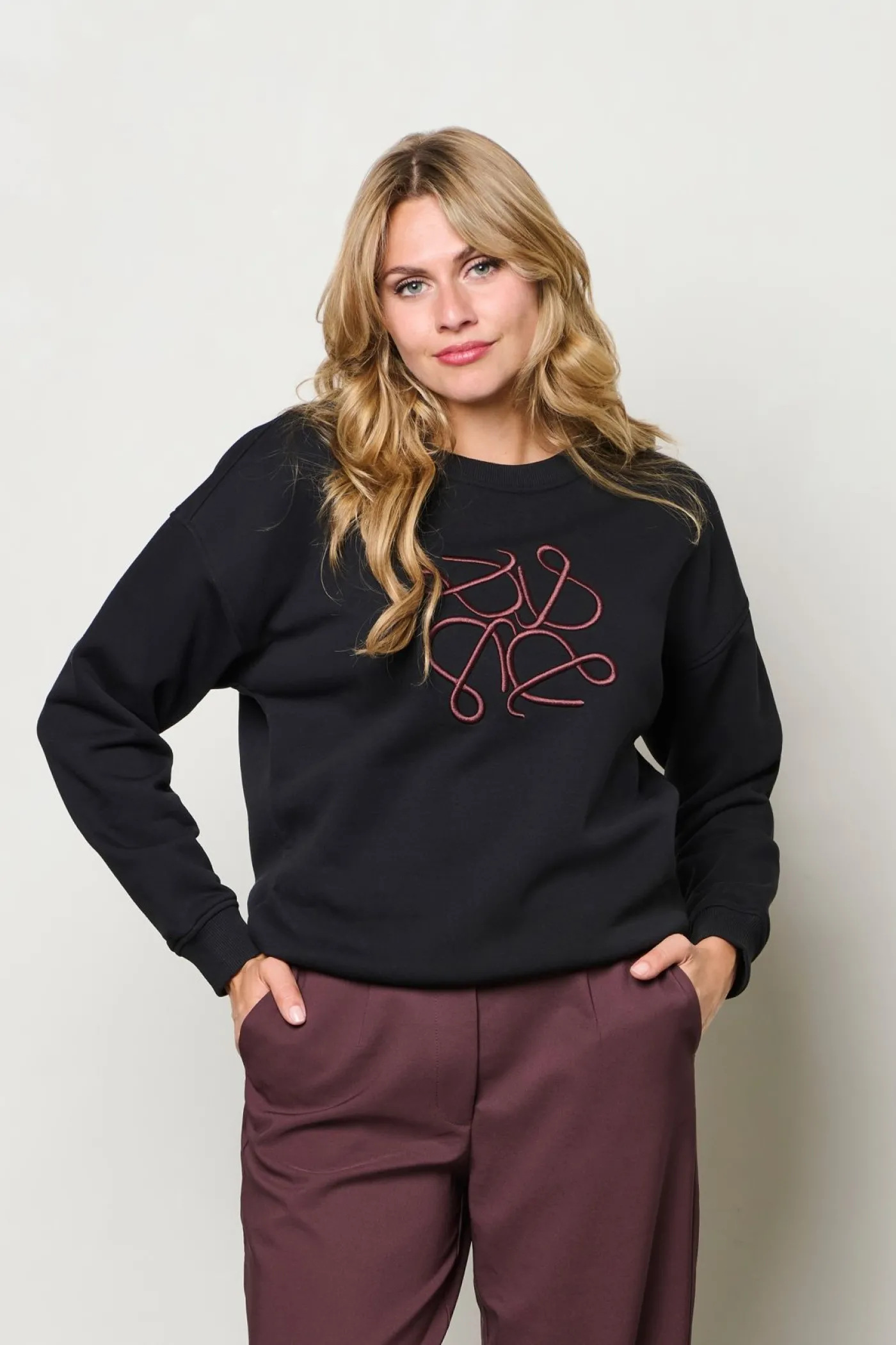 Deze royale sweater van &Co Woman is uitgevoerd in de kleur zwart en valt comfortabel los dankzij de rechtvallende pasvorm. De subtiele borduurdetails geven een verfijnde touch aan het ontwerp en het materiaal voelt zacht aan, waardoor het item fijn draagt op koelere dagen. Combineer met een donkere broek of rok voor een stijlvolle, casual look die direct opvalt.
