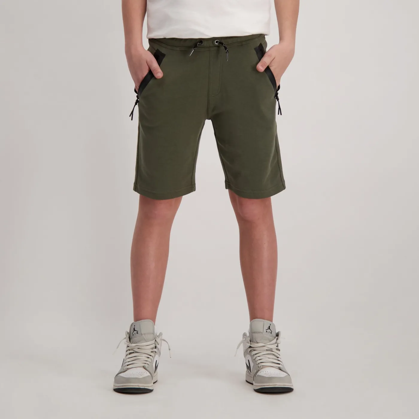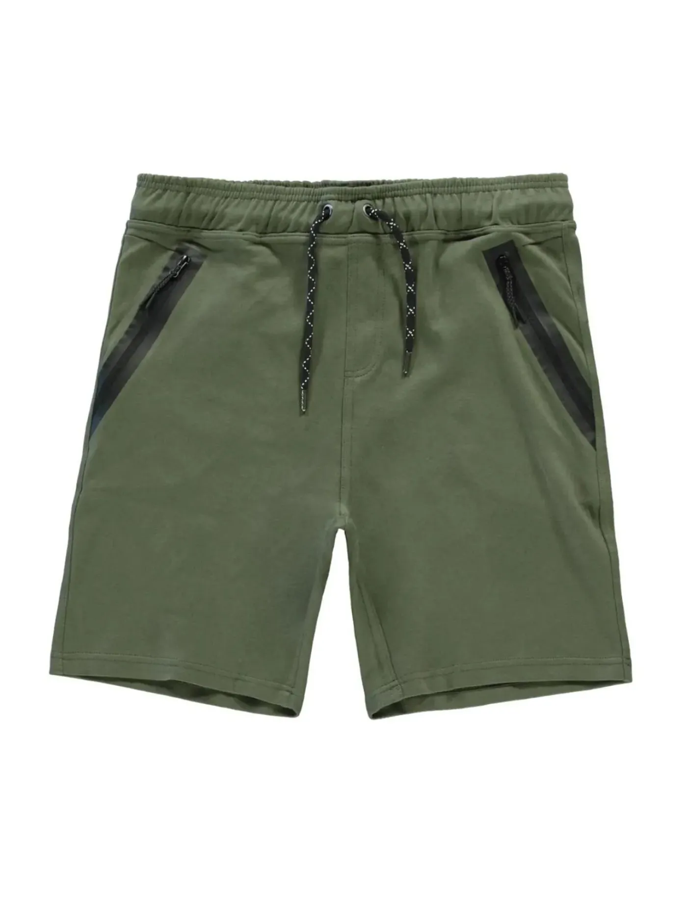 Groene jog short van het merk Cars Jeans. Dit short voor jongens heeft twee steekzakken met ritssluiting, een elastische tailleband met vetersluiting en een zakje aan de achterzijde.