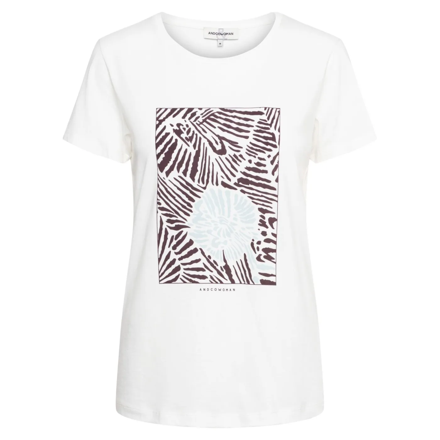 Dit witte shirt van &Co Woman heeft een leuke print op de voorkant.