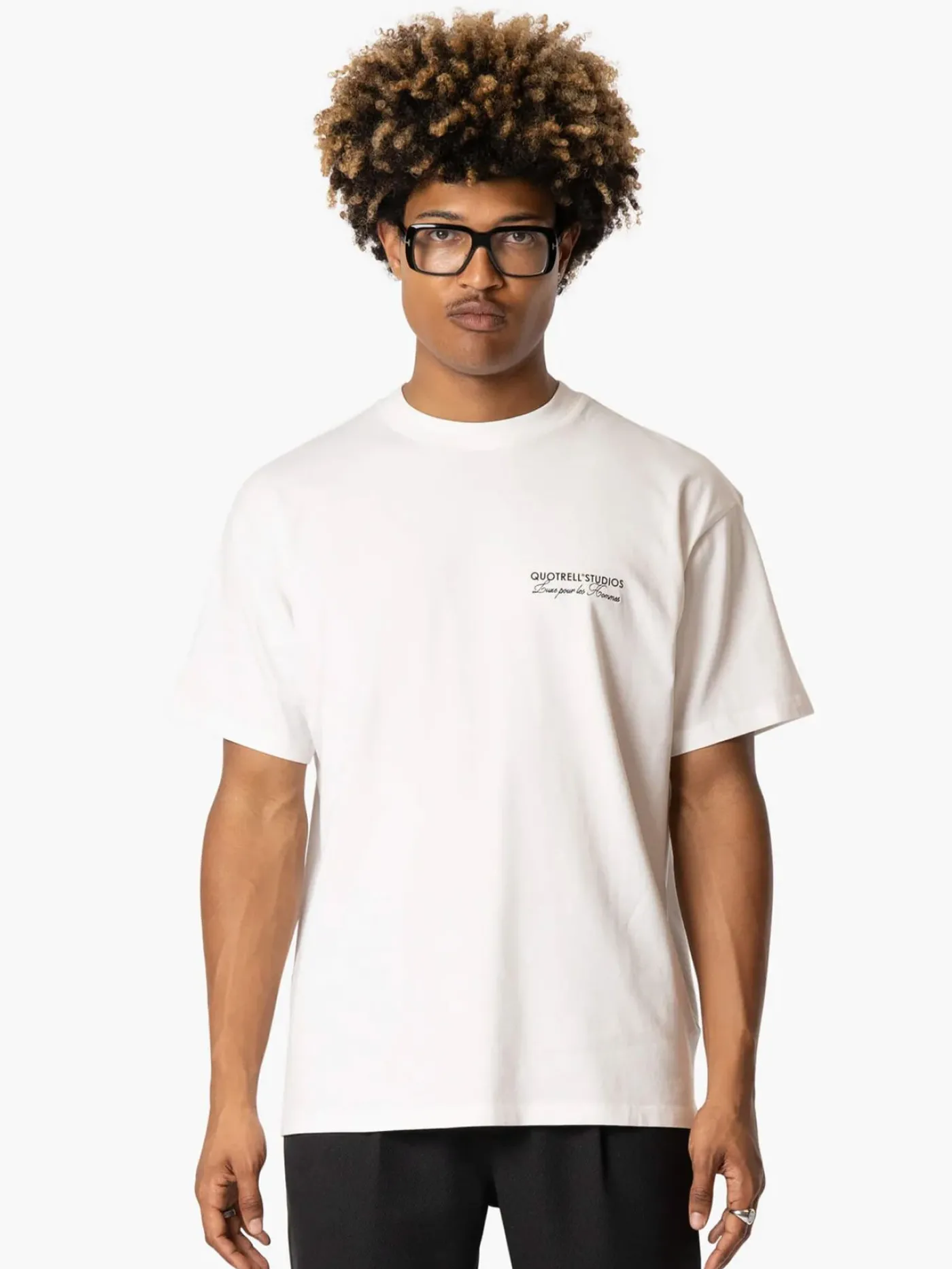 Wit T-Shirt voor heren van het merk Quotrell. Het item is gemaakt van 100% katoen. Hij heeft een ronde hals, korte mouwen en een oversized pasvorm voor ultiem comfort. Het opvallende backprint patroon geeft een trendy touch.