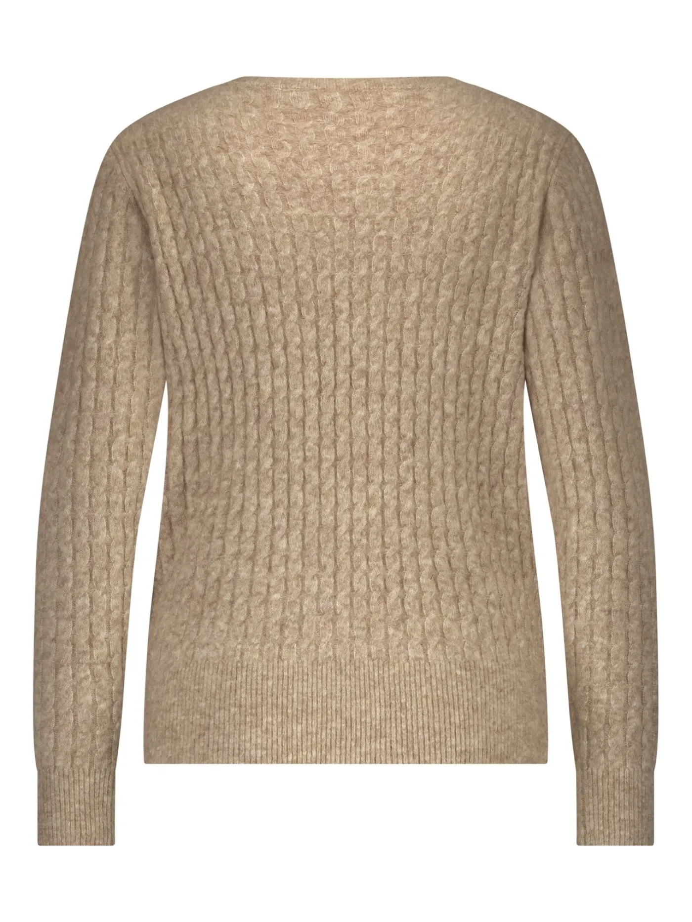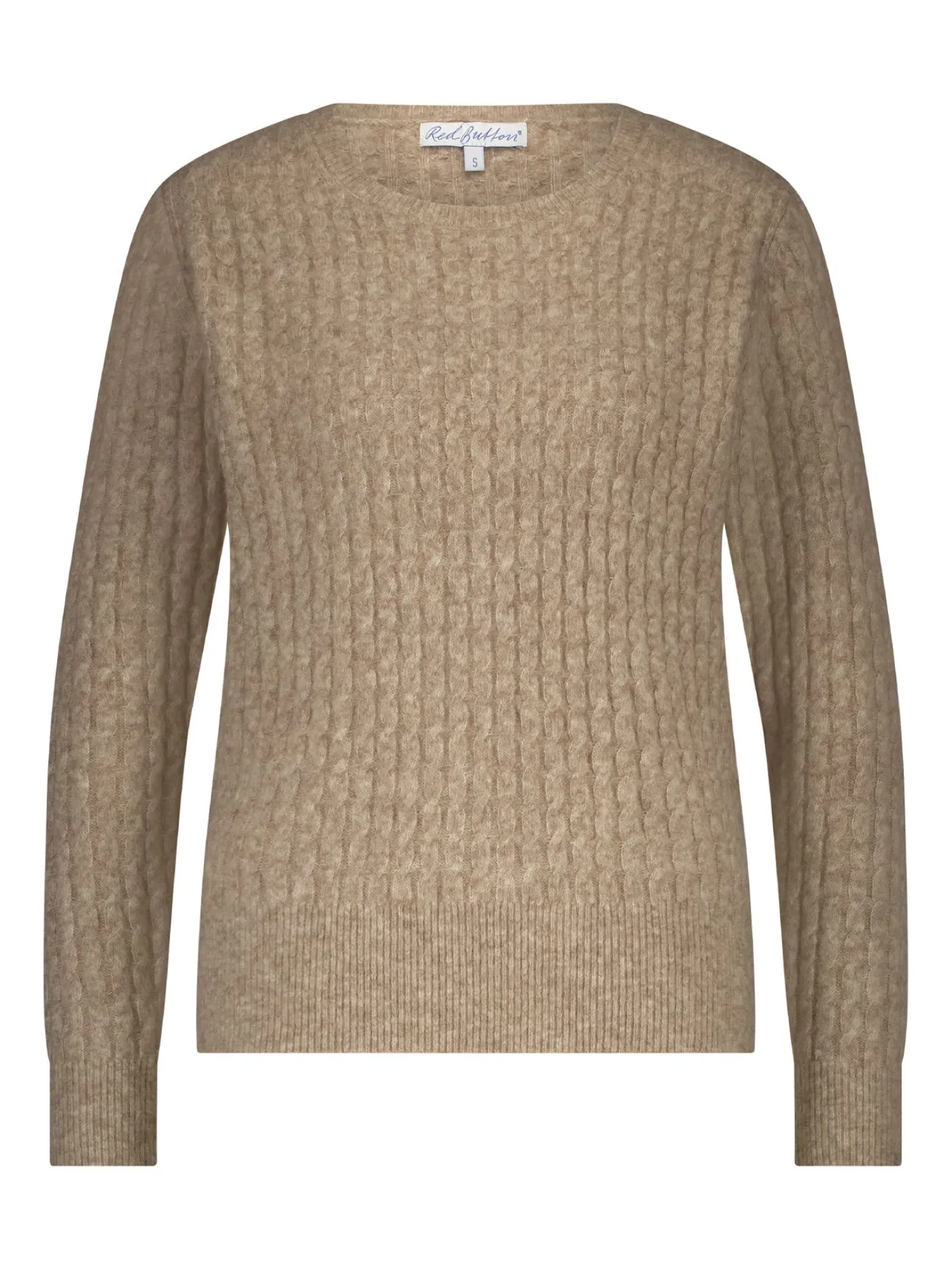 Deze lichtbruine kabel trui van het merk Red Button is perfect voor komend najaar en komende winter. De trui heeft lange mouwen en een ronde hals. De trui is gemaakt van een zachte stof en is lekker warm voor de wat frissere dagen. Je kunt deze trui combineren met een jeans of mooie zwarte broek voor een casual look.