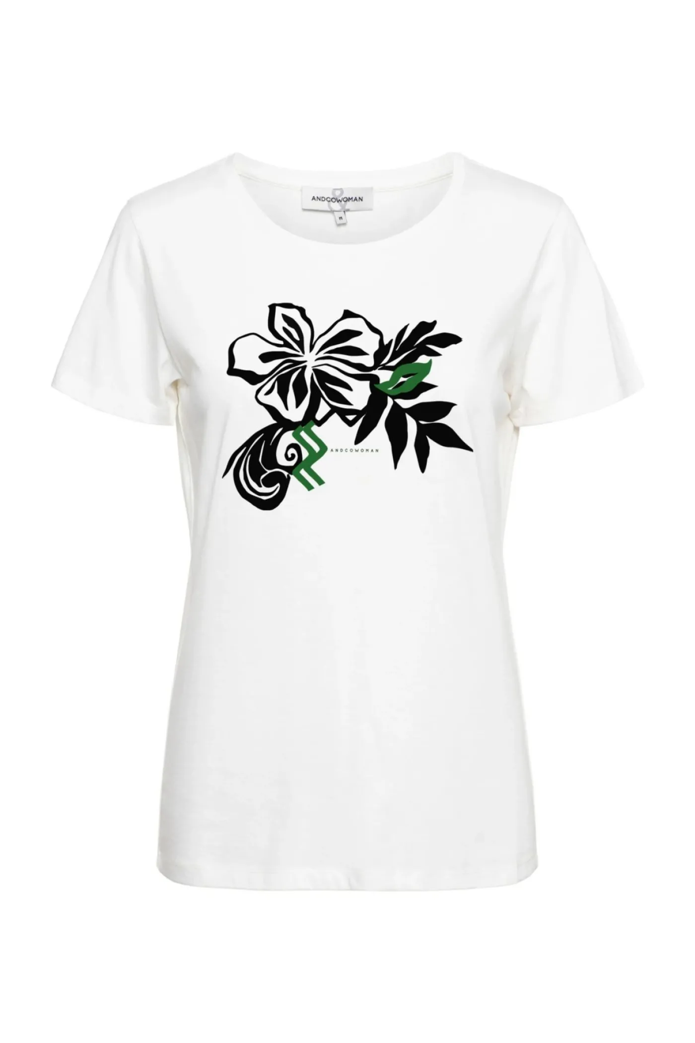 Dit toffe t-shirt van &Co Woman is een echte musthave voor in elke kledingkast. Het t-shirt heeft korte mouwen en een ronde hals. Op het t-shirt staat een mooie print van bloemen in het zwart met olijf groen. Je kunt dit t-shirt bijvoorbeeld heel leuk combineren met onze olijf groenePenelope travel broeken de Phileine travel blazer. Zo heb je een complete look met in elk item de mooie olijf groene kleur. Je kunt de outfit afstijlen met bijvoorbeeld een witte sneaker.