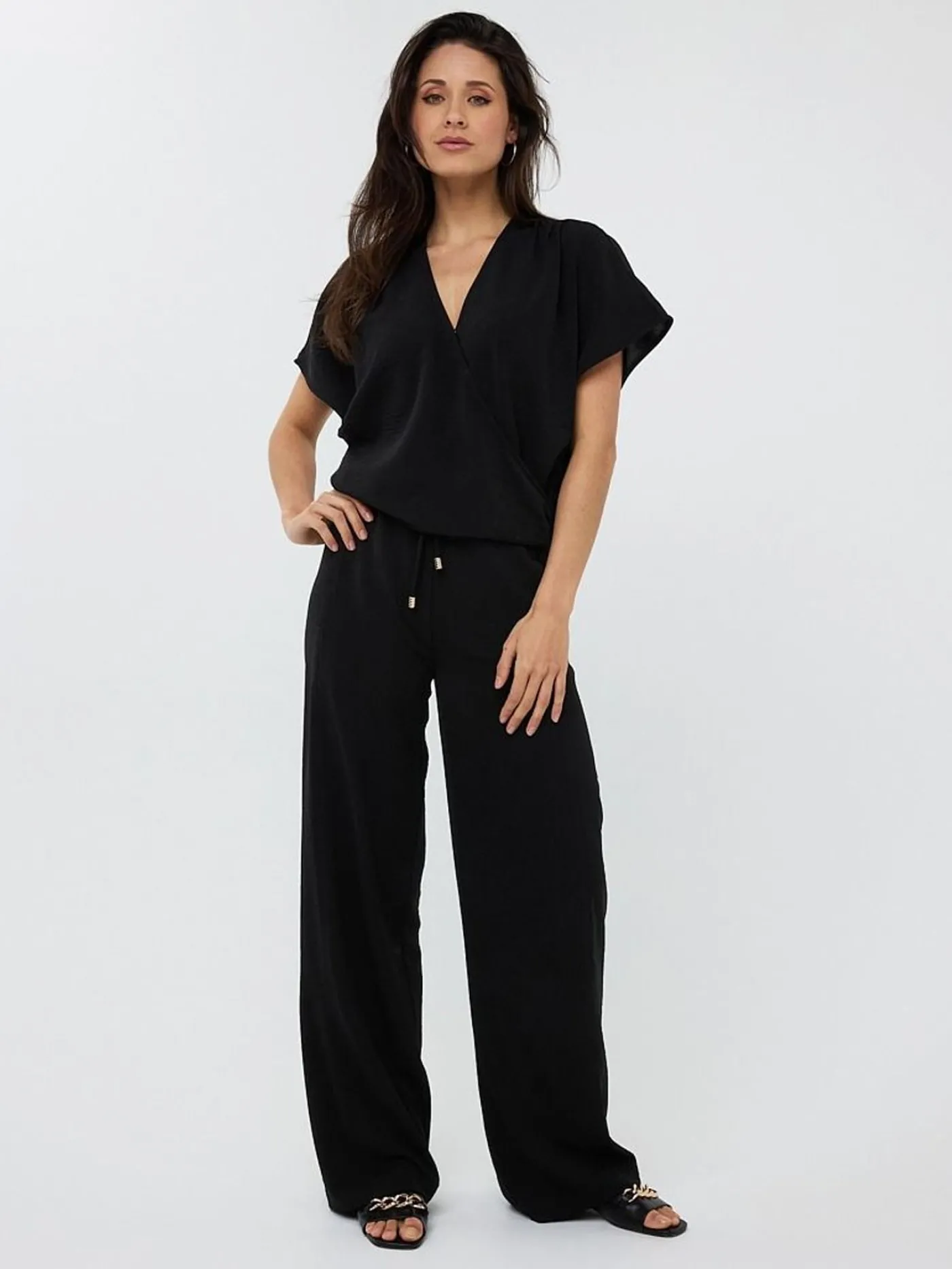 De top heeft een regular fit en is gemaakt van een zachte crinkle stof die een subtiele textuur en glans biedt. Het ontwerp met een V-hals en overlap geeft een vrouwelijke uitstraling, terwijl de crinkle stof zorgt voor een luchtig en comfortabel gevoel. Deze top is ideaal voor zowel casual als meer formele gelegenheden.
