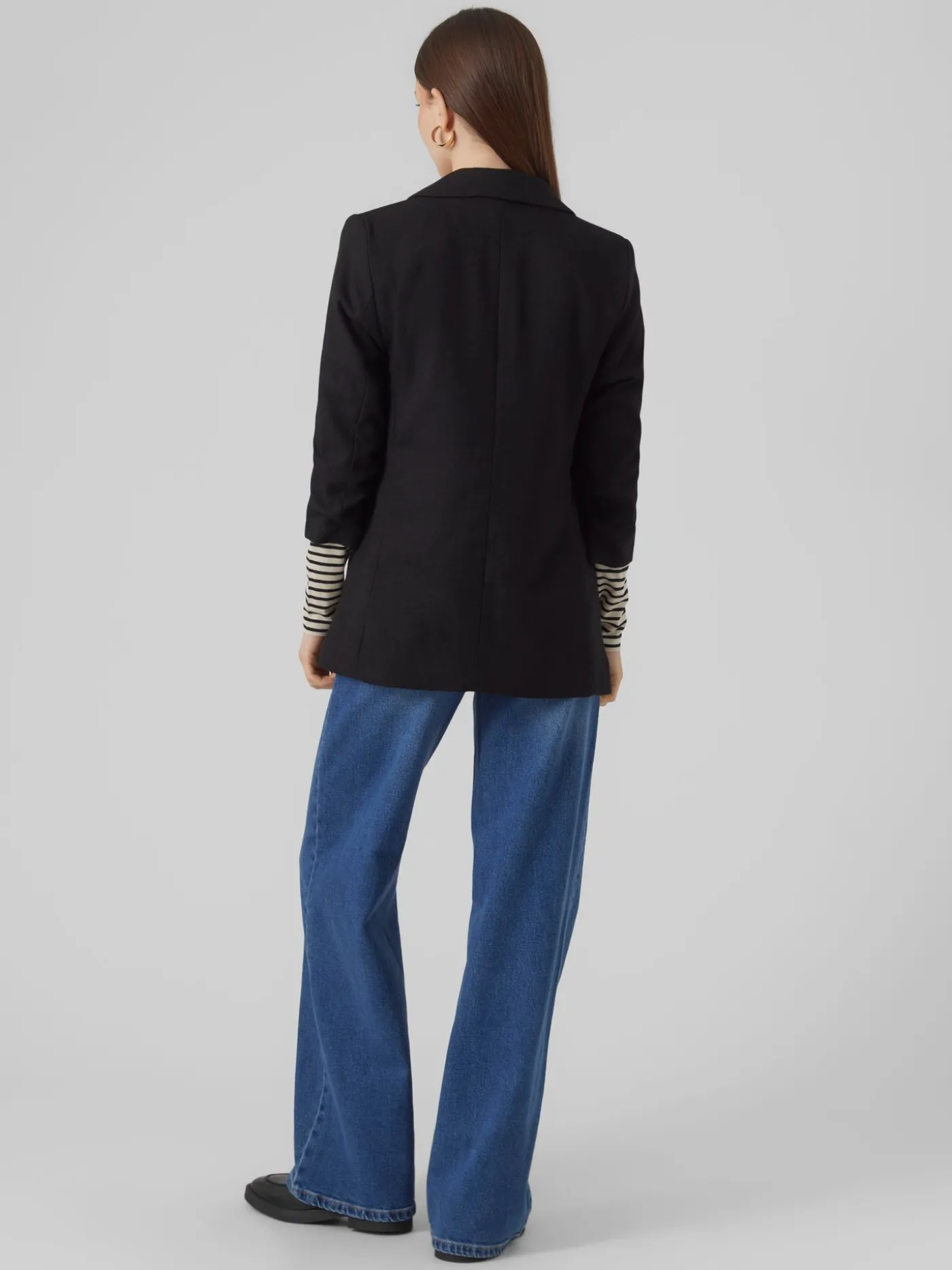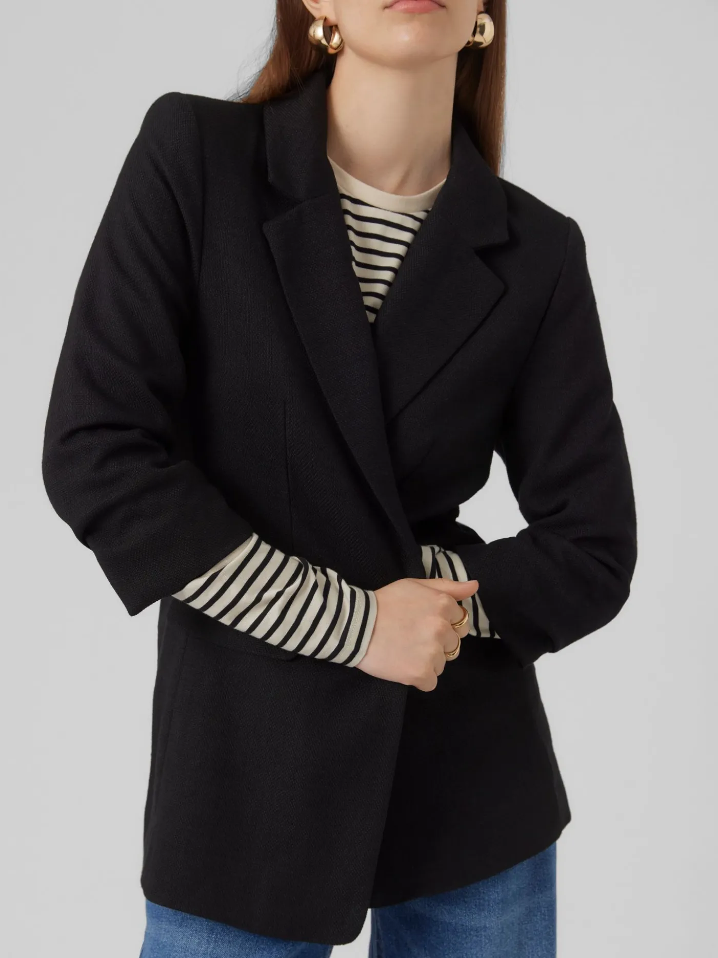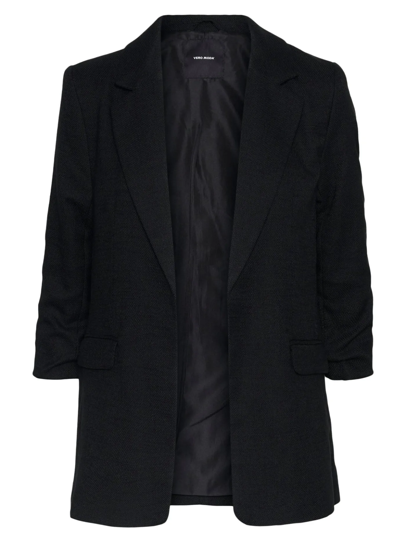 Deze zwarte blazer van Only heeft een regular fit en 3/4 mouwen, wat zorgt voor een moderne en comfortabele pasvorm. Het tijdloze ontwerp maakt hem geschikt voor zowel zakelijke als casual outfits, terwijl de zachte stof een verfijnde uitstraling geeft.