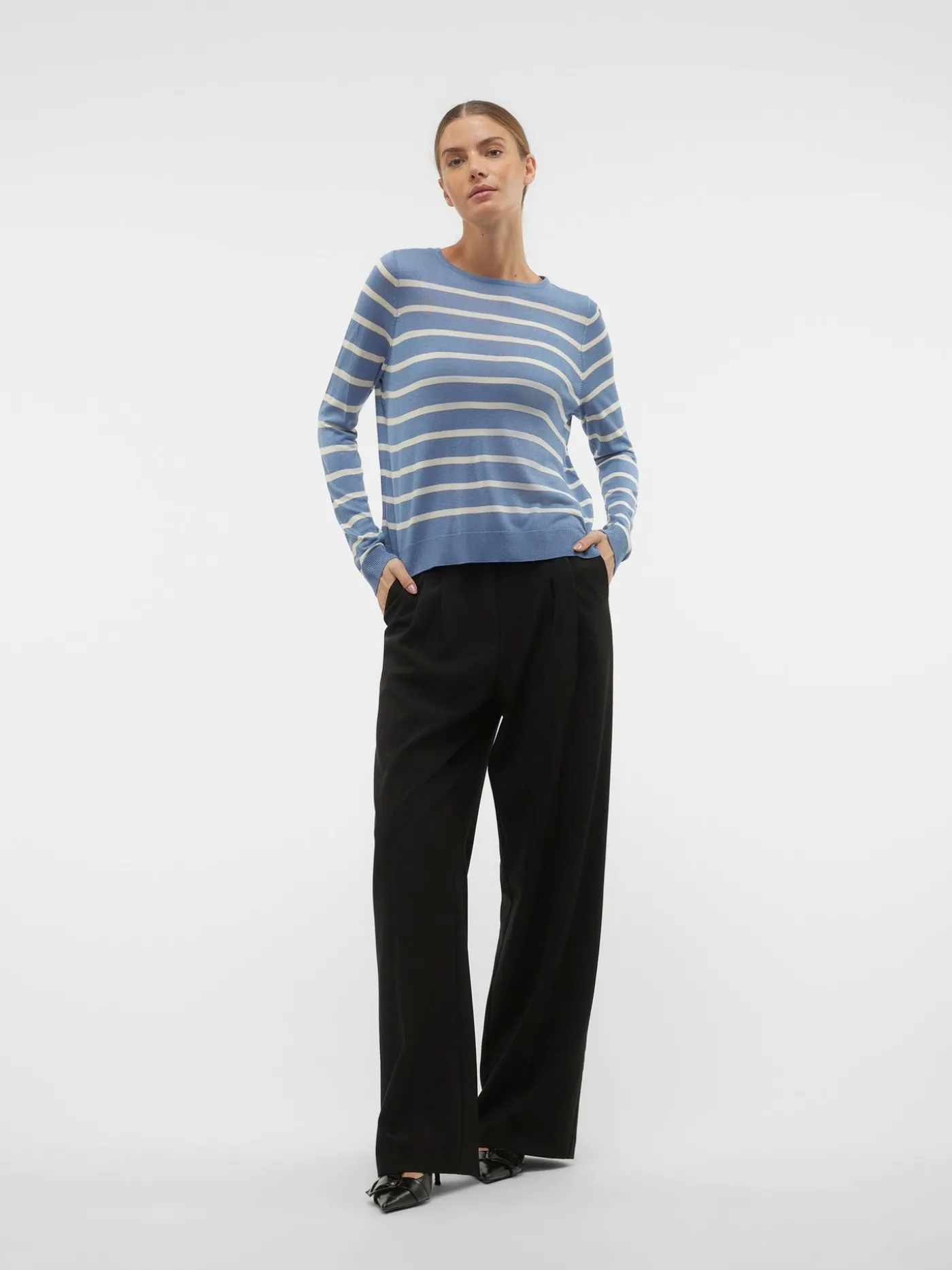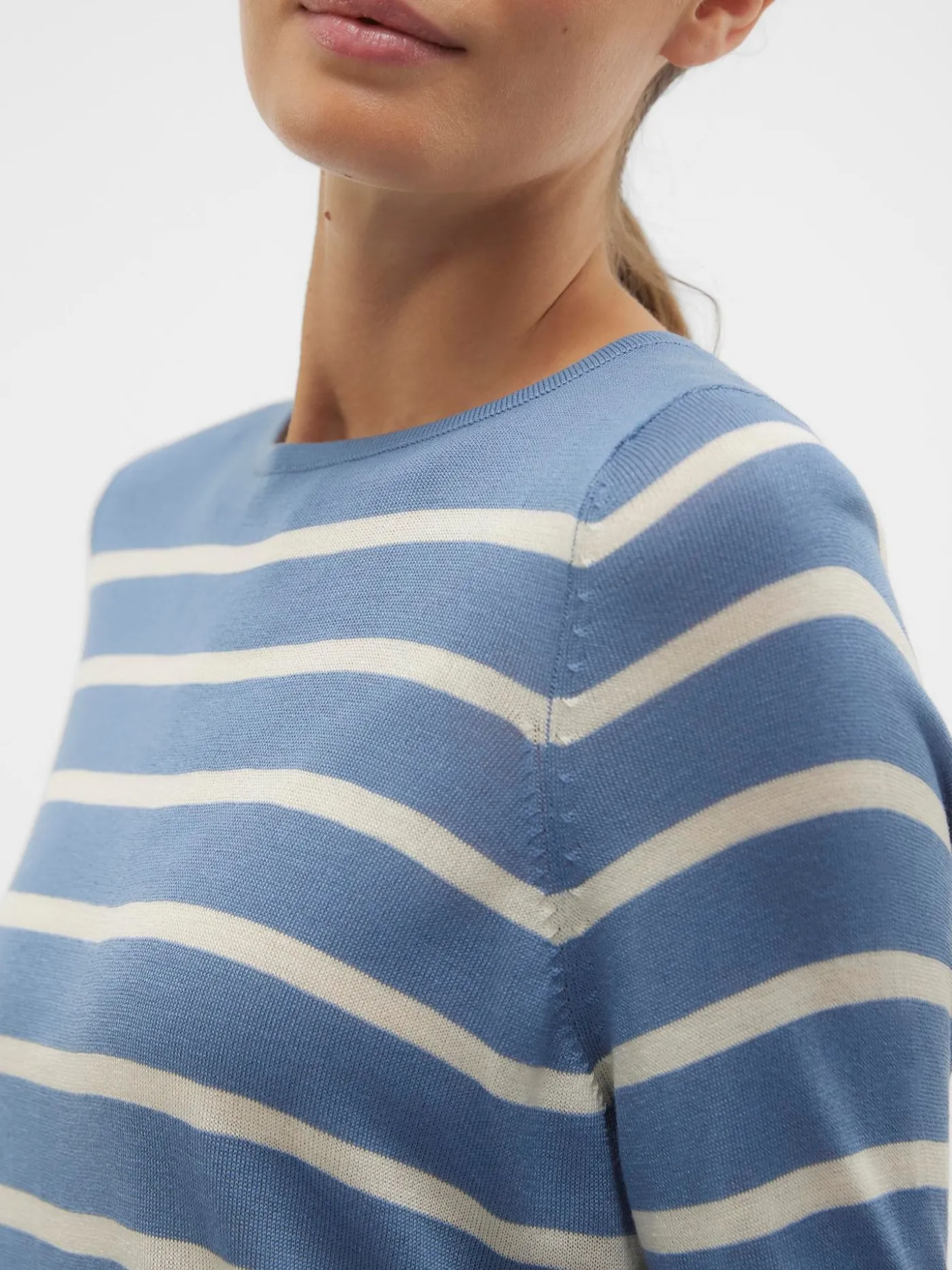 Een fijn gebreide trui van het merk Vero Moda. De trui heeft een blauw-wit strepenpatroon. Het item heeft een ronde hals en lange mouwen. Een item wat zeker niet kan ontbreken in je kledingkast! Combineer de trui eens met een blauwe jeans en je loopt er warm, stijlvol en comfortabel bij! Tevens ook verkrijgbaar in een variant met een wit-blauw strepenpatroon.