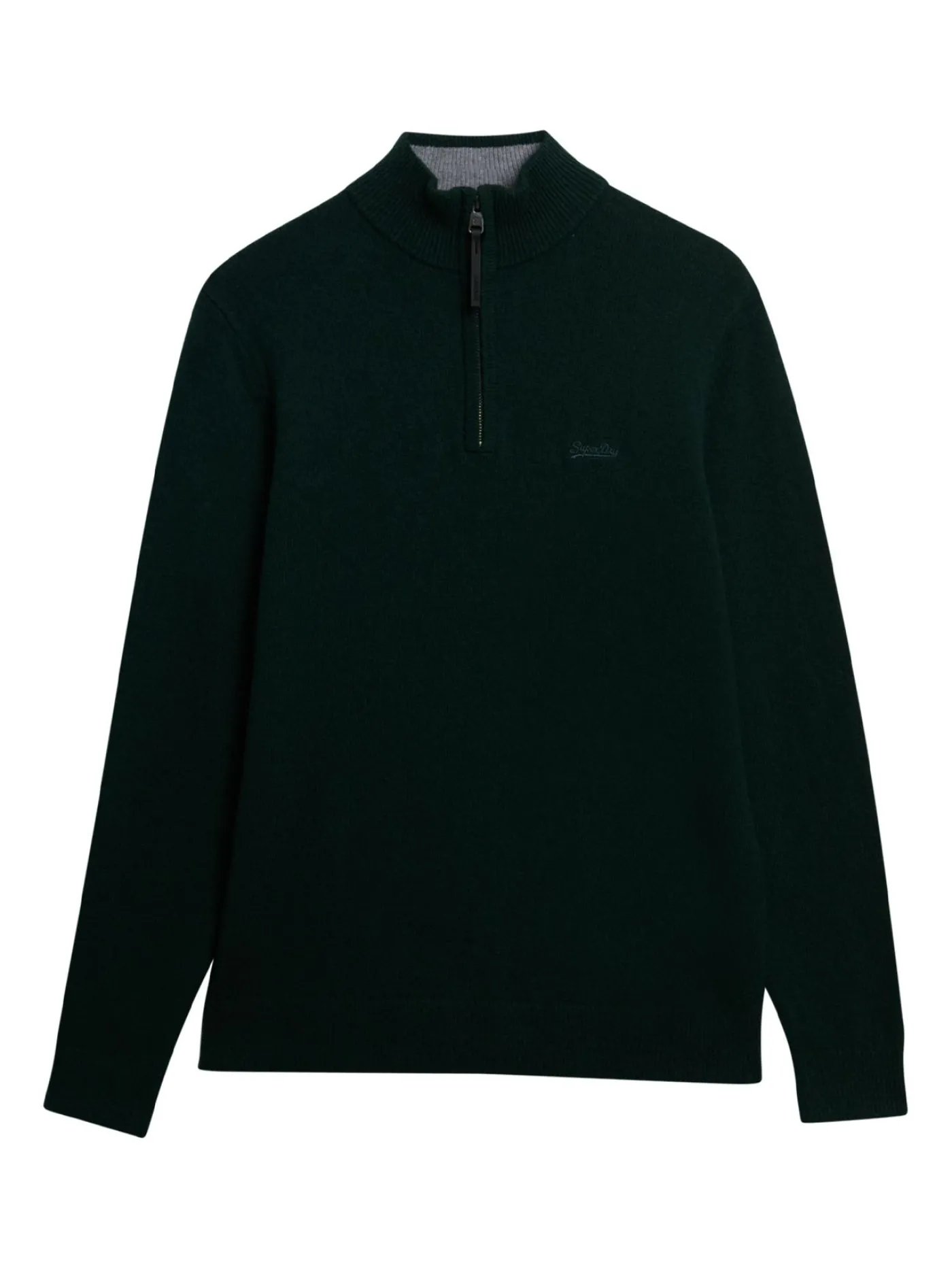 Deze donkergroene half zip jumper van Superdry is gemaakt van een hoogwaardige wolblend die warmte en comfort combineert. De halve ritssluiting en opstaande kraag geven de trui een sportieve en moderne uitstraling. Dankzij de regular fit en zachte stof is hij ideaal voor dagelijks gebruik. De diepe groene kleur zorgt voor een stoere en veelzijdige look. Perfect te dragen bij zowel een casual outfit als een nettere combinatie.
