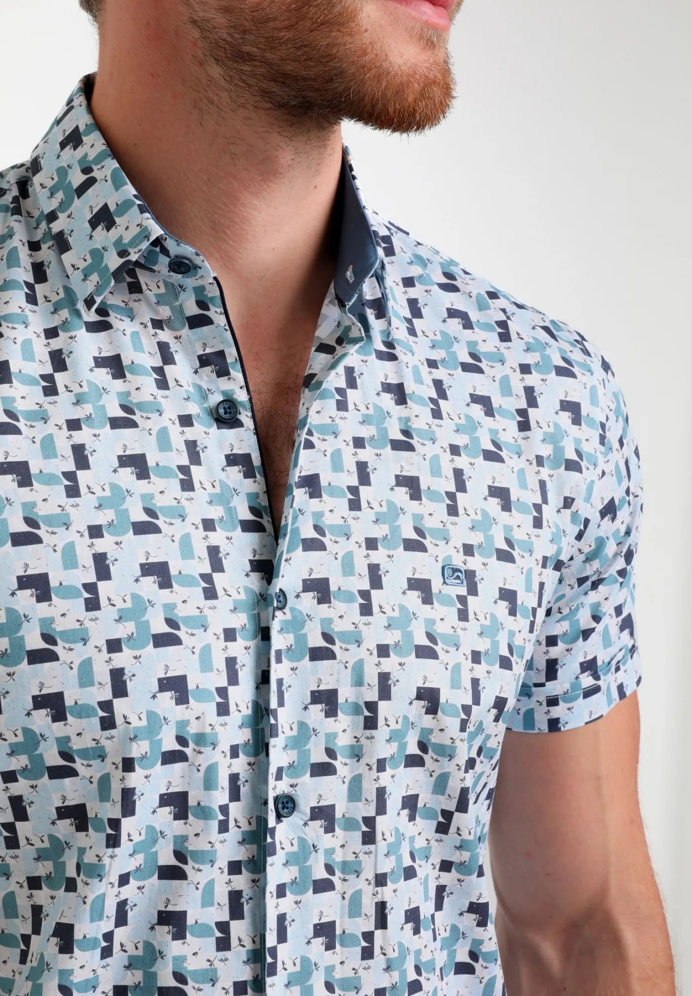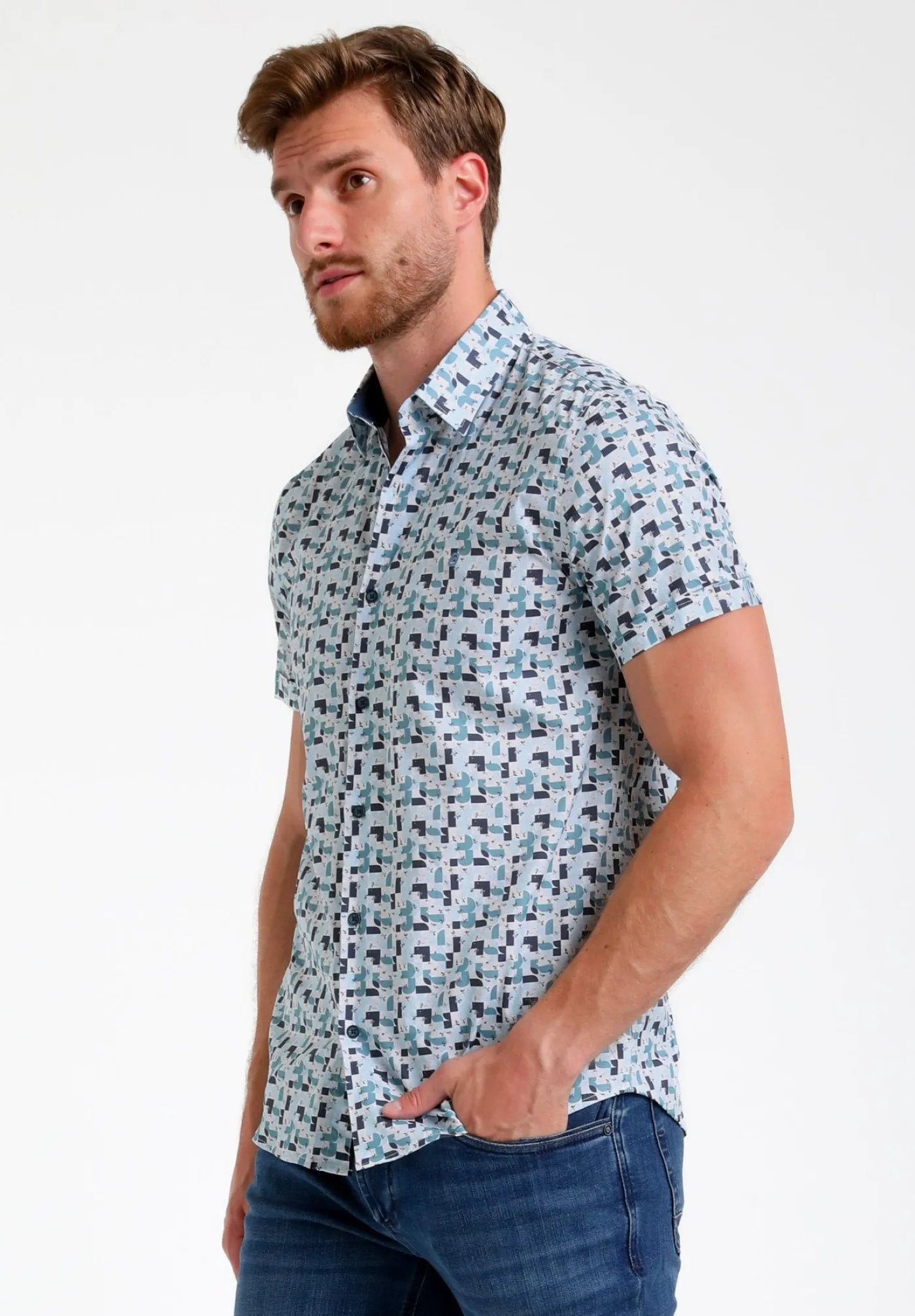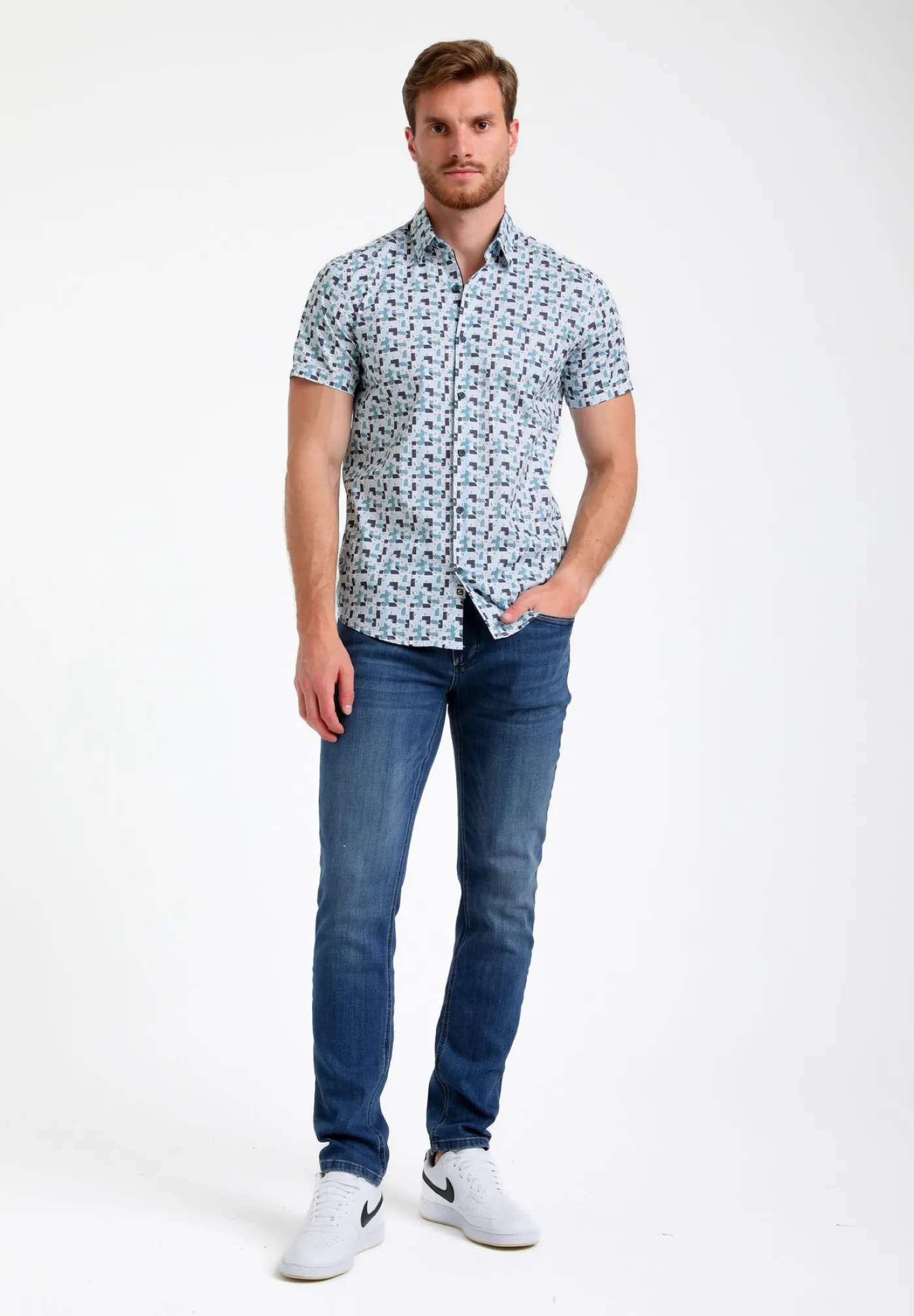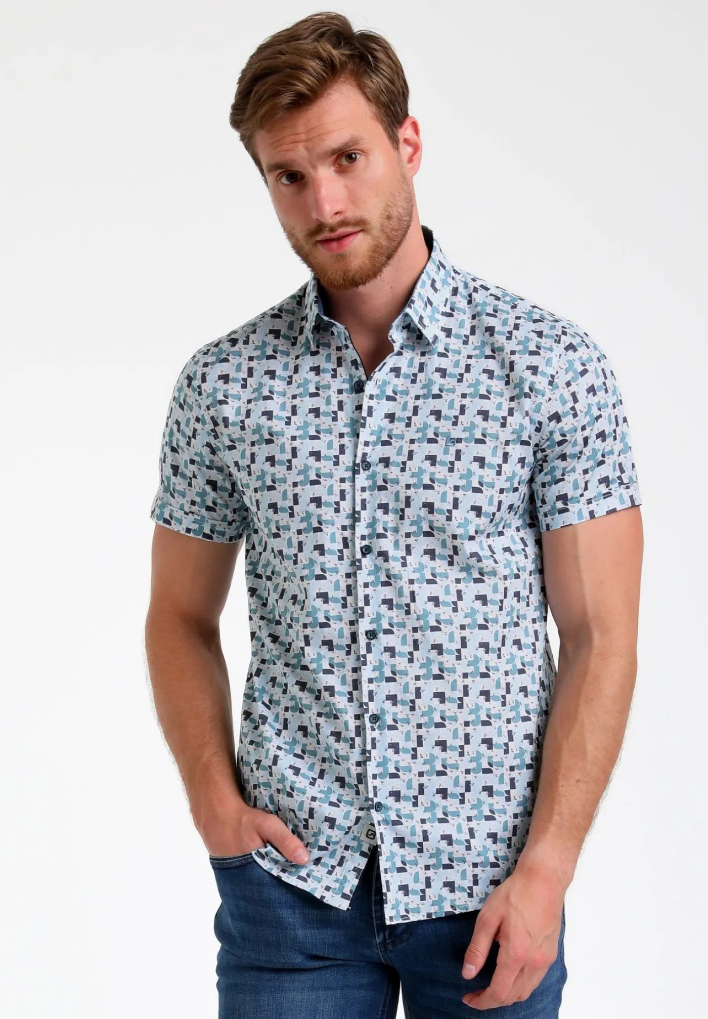 Dit overhemd van Gabbiano in de kleur Bright Blue is voorzien van een all over print. Dit overhemd met korte mouwen sluit met knoopjes en heeft een opstaande kraag. Op de borst zit een Gabbiano logo detail.