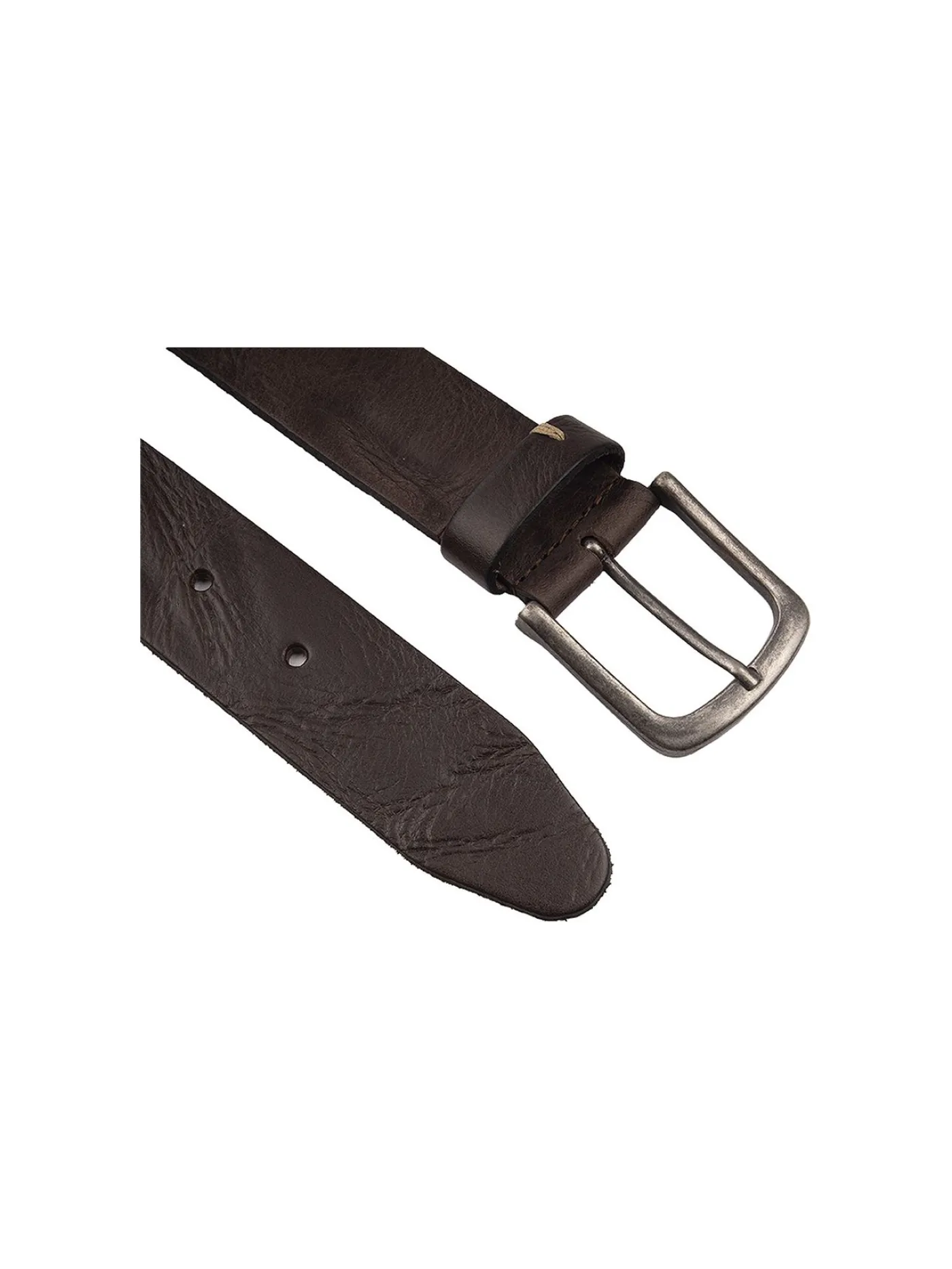 Ben jij op zoek naar een donkerbruine stoere riem? Dan is dit misschien wel de riem voor jou. Deze donkerbruin, leren riem van Presly & Sun heeft een mooie stoere look door de nerven die in het leer staan. De riem heeft een zilver/grijze gesp.