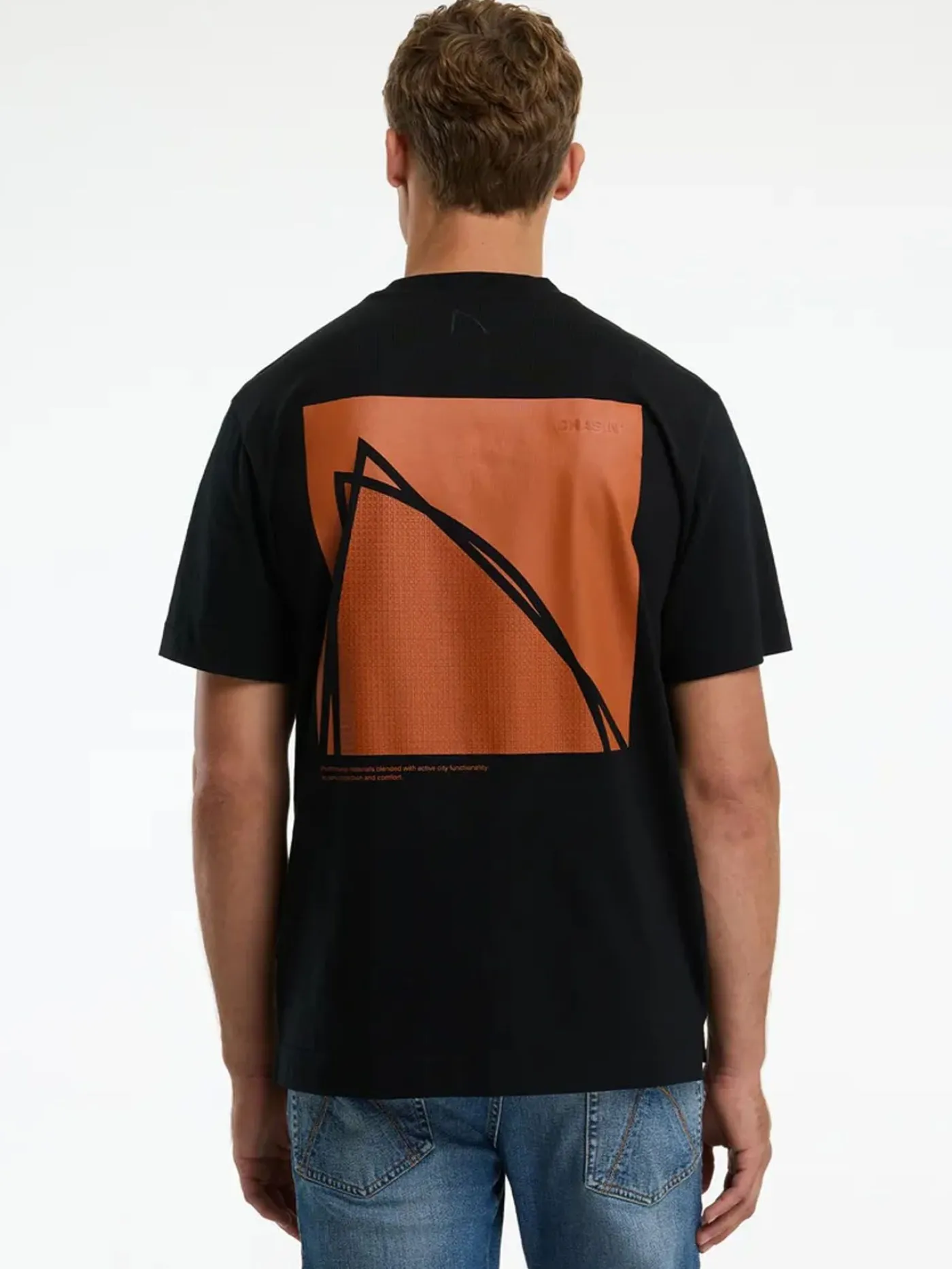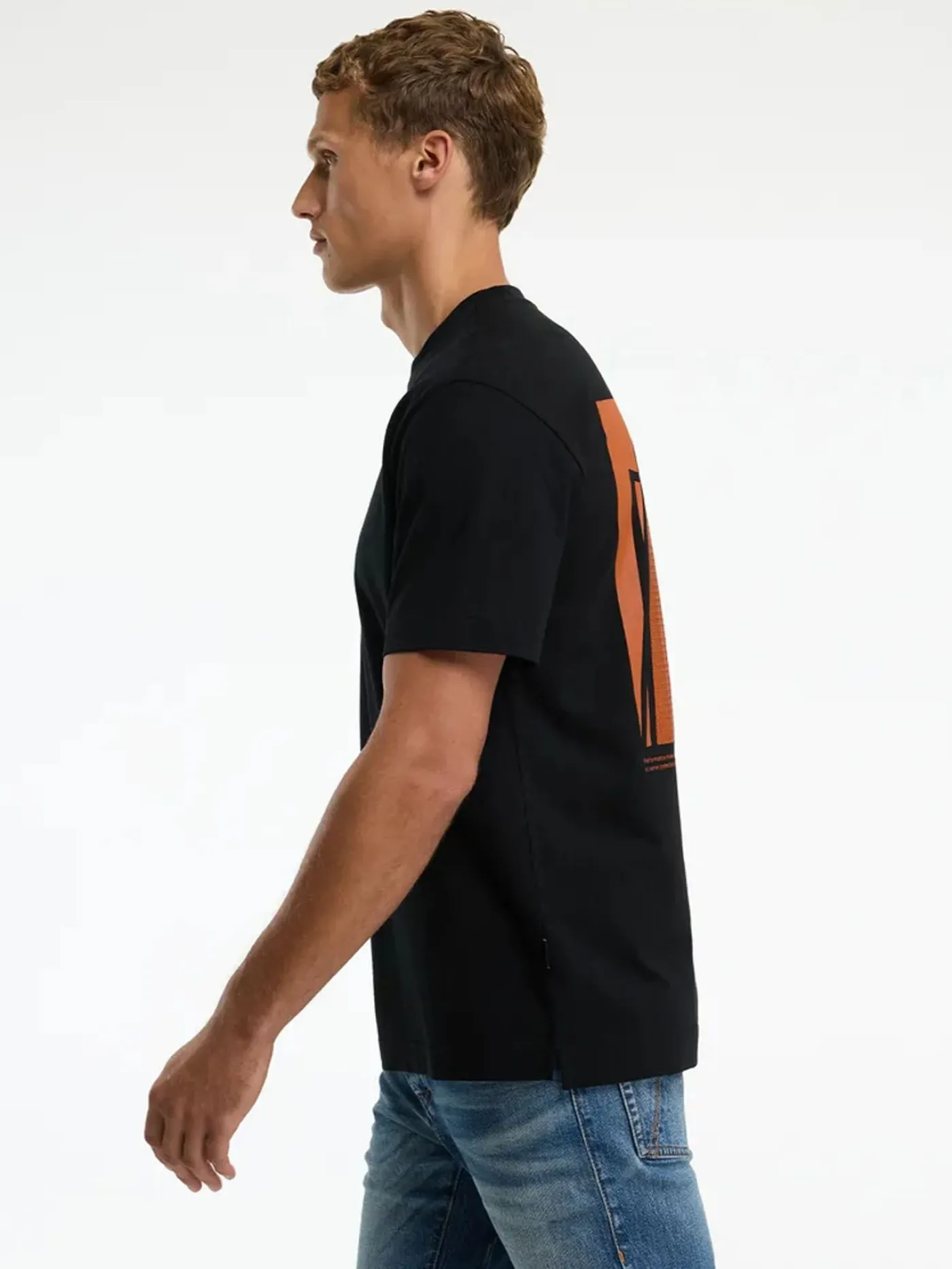 Dit zwarte T-shirt voor heren valt op door het opvallende oranje logo en de bijbehorende tekst op de rechterkant van het shirt. Het zachte materiaal zorgt voor comfort en een fijne pasvorm, terwijl het rechte model een tijdloze uitstraling geeft. Draag het T-shirt casual met jeans of shorts voor een relaxte, stoere look. Een basic met een speels accent dat iedere outfit direct een eigentijdse touch geeft.