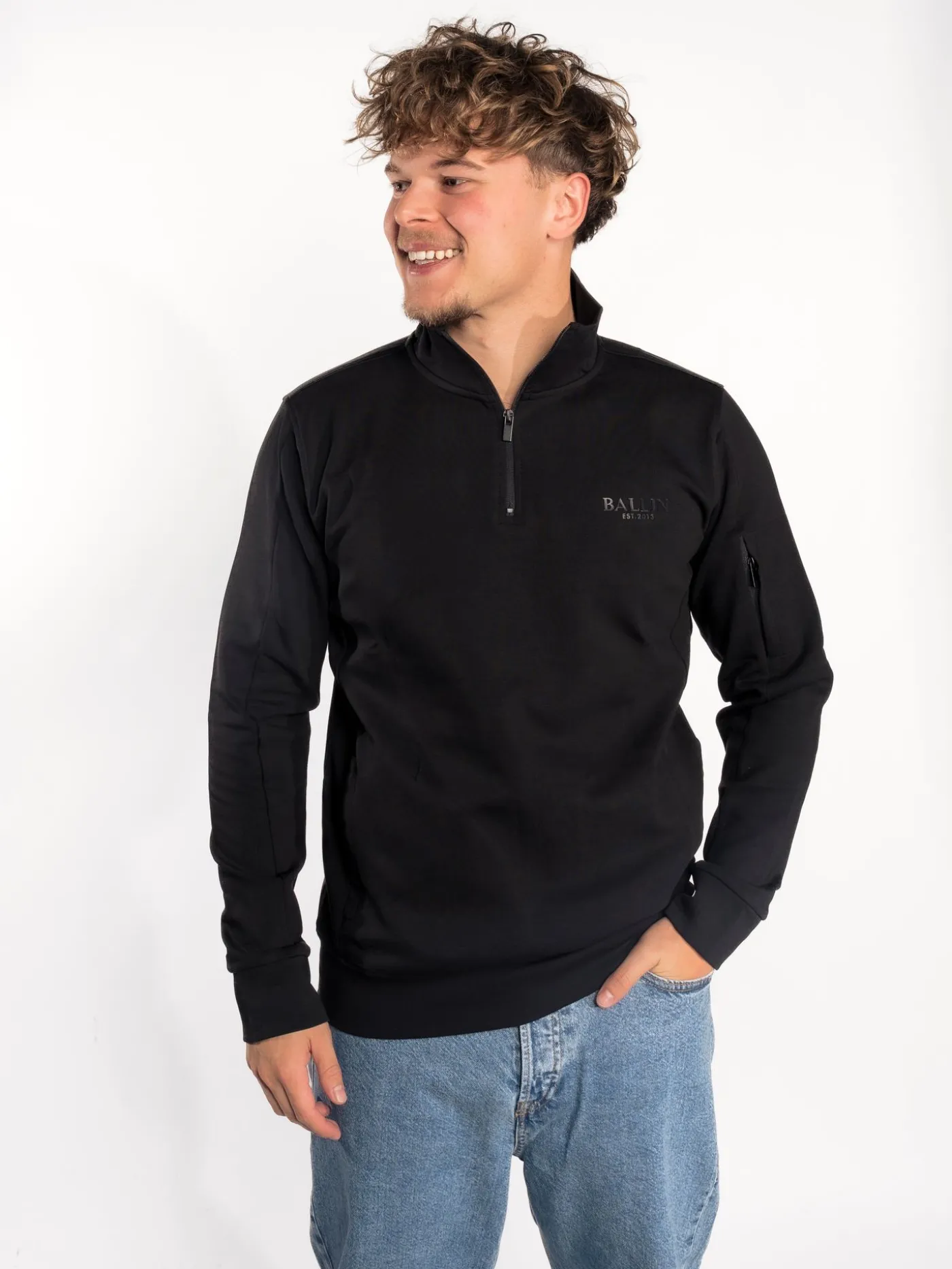 Deze zwarte half-zip hoodie van Ballin combineert comfort met subtiele stijl. Het zwarte logo op de linkerborst is in de stof verwerkt, waardoor de letters goed zichtbaar zijn zonder een opdruk te zijn. De zachte, hoogwaardige stof en de relaxte pasvorm zorgen voor optimaal draagcomfort, terwijl de halflange ritssluiting extra flexibiliteit biedt. Perfect voor een casual streetwear look die modern en ingetogen tegelijk is.