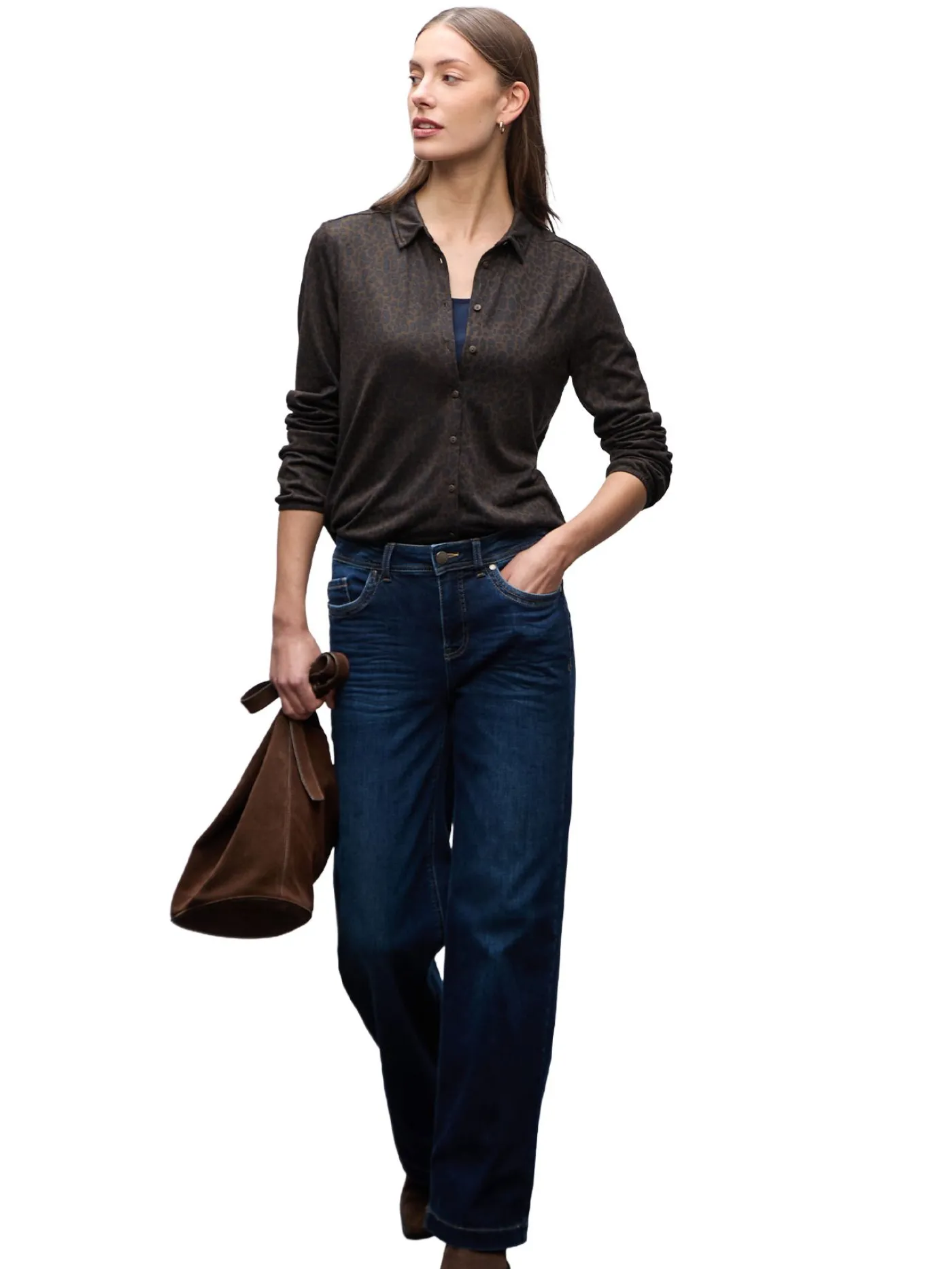 Deze jersey-blouse heeft een relaxed, losvallend model en is uitgevoerd in een zachte nomad-kleur (darkest brown) met een all-over QR-print voor een unieke en moderne twist. De blouse is gemaakt van een mix van katoen en modal, wat zorgt voor een soepele, comfortabele pasvorm. Dankzij de lichte, luchtige stof en het duidelijke patroon is dit item perfect voor zowel een casual daglook als een stijlvolle avondoutfit. Combineer met een effen pantalon of jeans om de print de aandacht te geven die hij verdient.