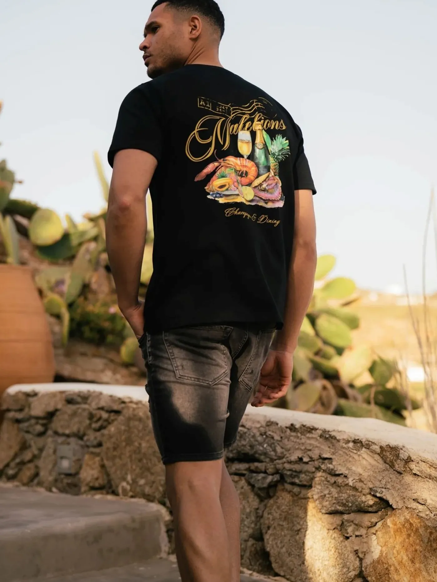 Vier het leven in stijl met het Malelions Men Champagne T-Shirt in het zwart. Dit statement piece combineert luxe vibes met een urban edge. De opvallende “Champagne” print op de achterkant geeft het shirt een feestelijke twist, zonder in te leveren op klasse.