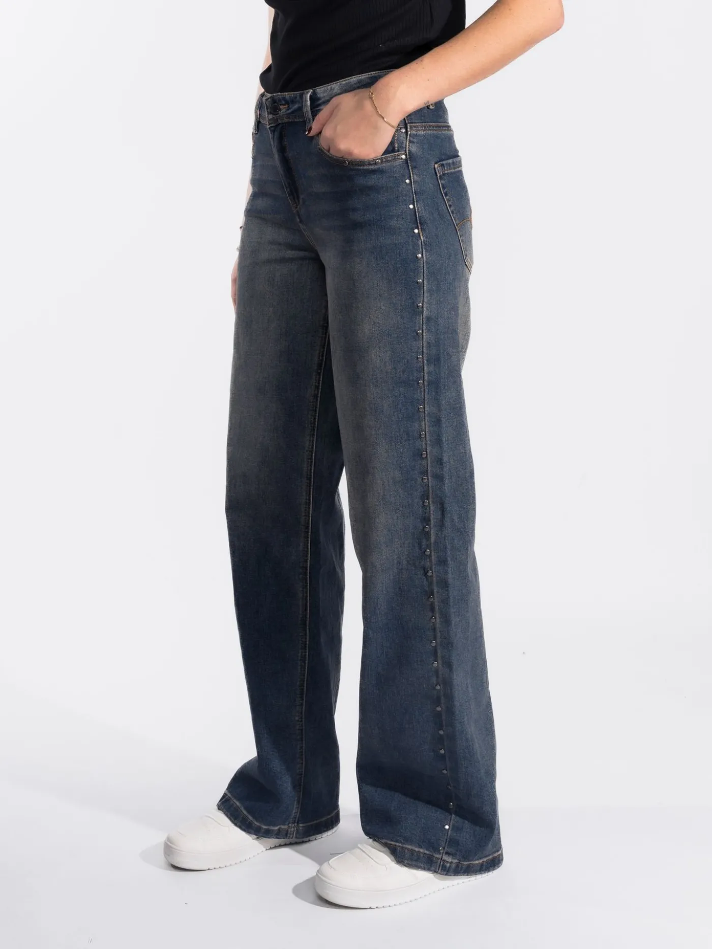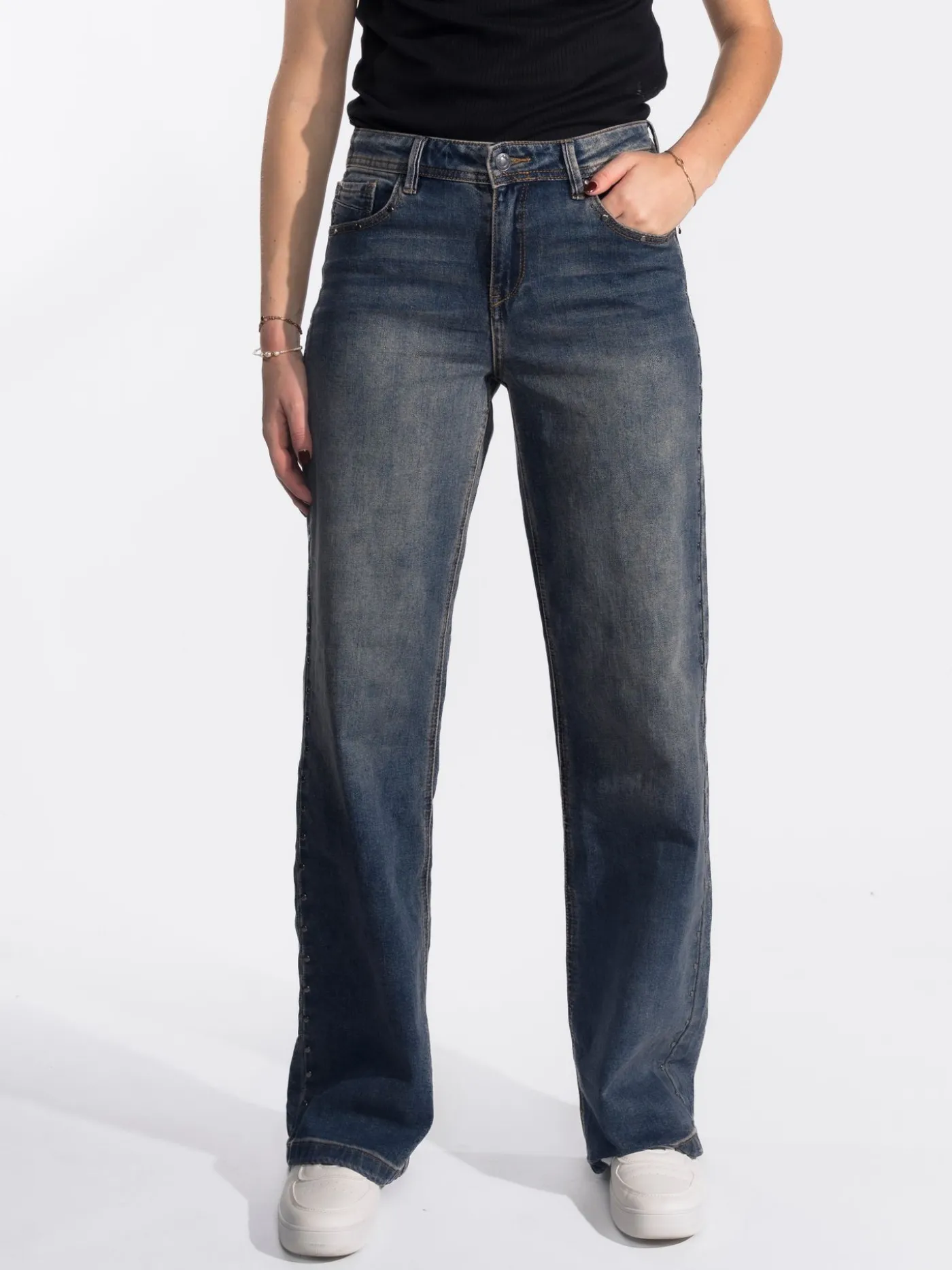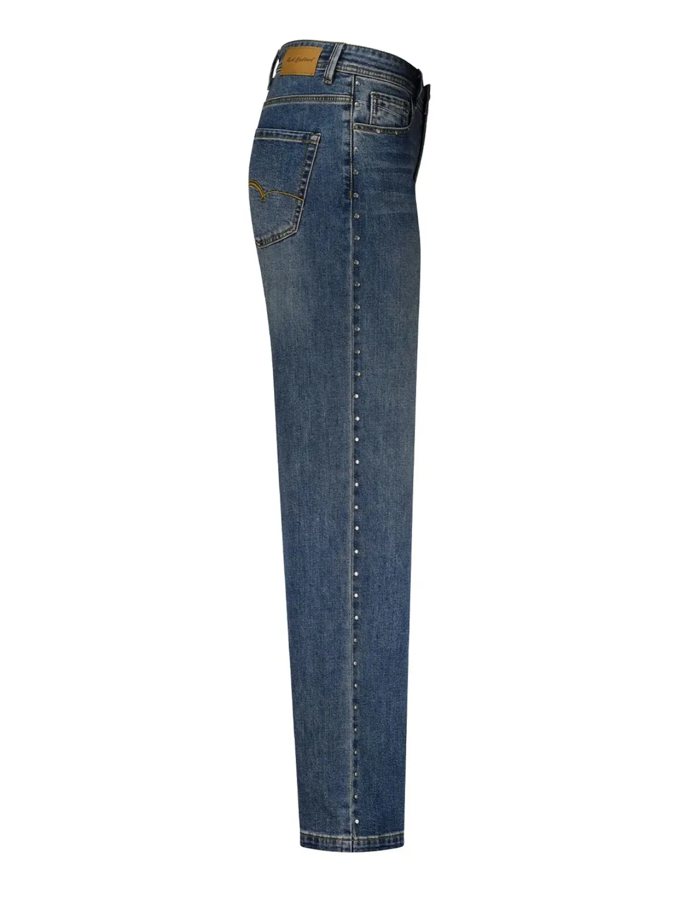 Deze donkerblauwe jeans van Red Button heeft een aansluitende pasvorm die de vrouwelijke vormen mooi accentueert. De jeans is gemaakt van een comfortabele stretchstof die veel bewegingsvrijheid biedt. Het tijdloze design maakt hem geschikt voor zowel casual als meer geklede outfits. Dankzij de diepe blauwe kleur is de broek makkelijk te combineren met allerlei tops en schoenen. Een veelzijdige must-have voor elke garderobe.
