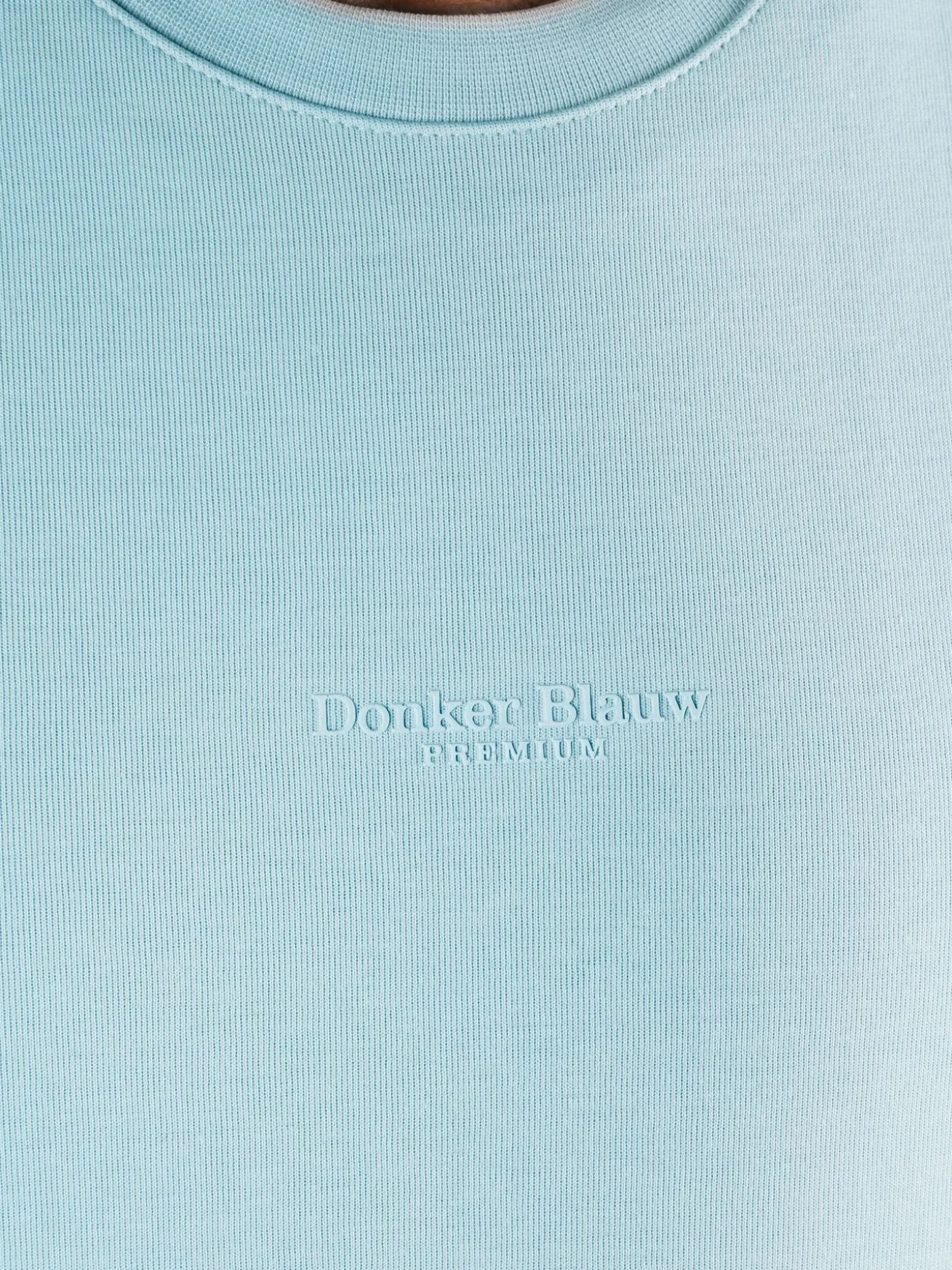 Lichtblauw T-shirt voor heren van het mek Donker Blauw. Dit item is voorzien van een grote backprint en een klein merklogo op de borst. Het T-shirt heeft korte mouwen en een ronde hals.