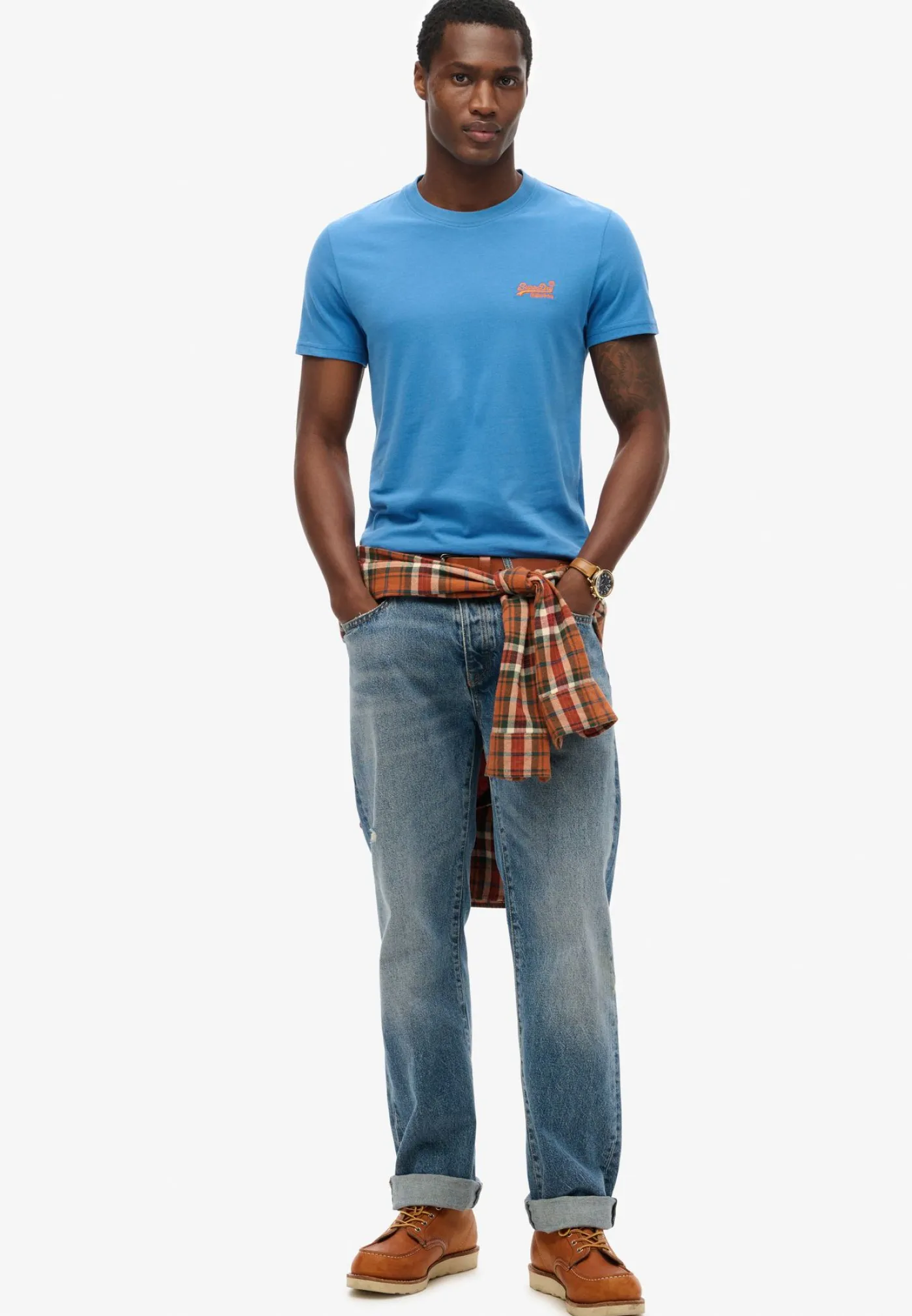 Een shirt uit de nieuwe collectie van het merk Superdry. Het item is blauw en heeft een ronde hals. Het shirt heeft korte mouwen en op de borst staat het logo in het oranje. Het item is ideaal voor de lente-en zomerdagen en mag zeker niet ontbreken in jouw garderobe. Combineer het shirt met een bijpassende jeans.
