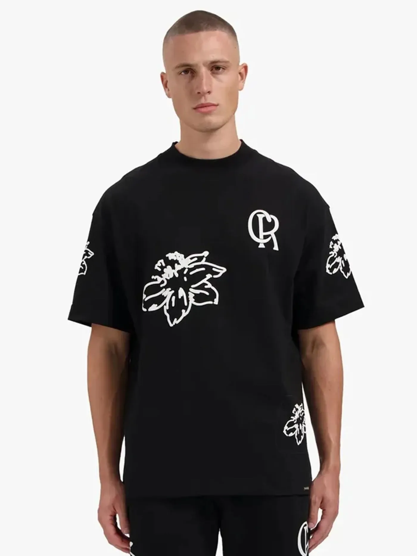 Dit zwarte T-shirt van Croyez springt in het oog door de verspreide bloemenprint over het hele design. Op de linker borst is het merk subtiel weergegeven, wat zorgt voor een stijlvolle balans tussen print en logo. Het shirt heeft een comfortabele regular fit en is gemaakt van hoogwaardige katoenkwaliteit. De donkere basis in combinatie met de kleurrijke bloemen zorgt voor een krachtig contrast. Een trendy statement piece dat je outfit direct karakter geeft.