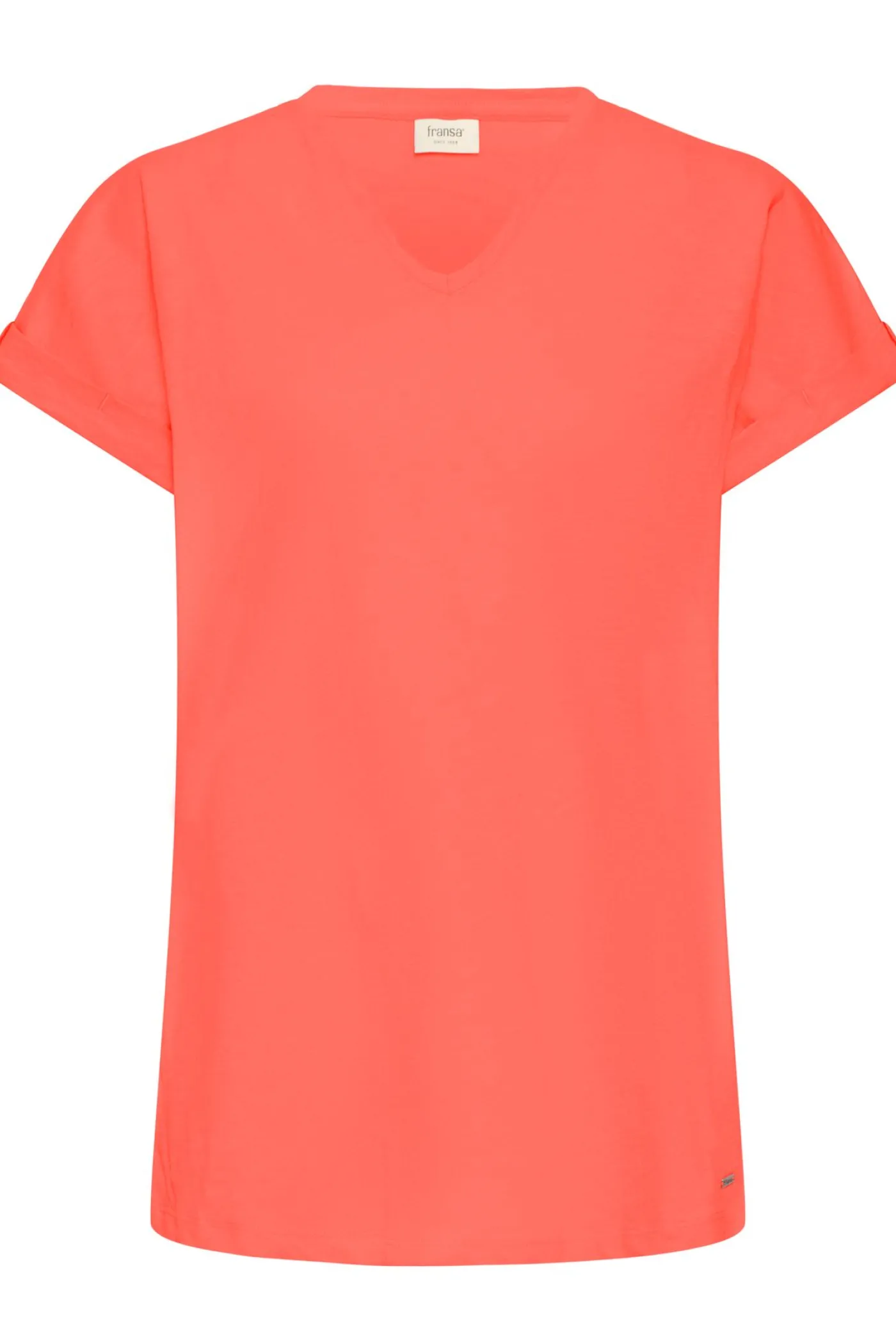 Shirtje van Fransa met V-Hals en aan de zijkant 2 knoopjes bij de mouwen. Combineer dit op een leuke spijkerbroek.