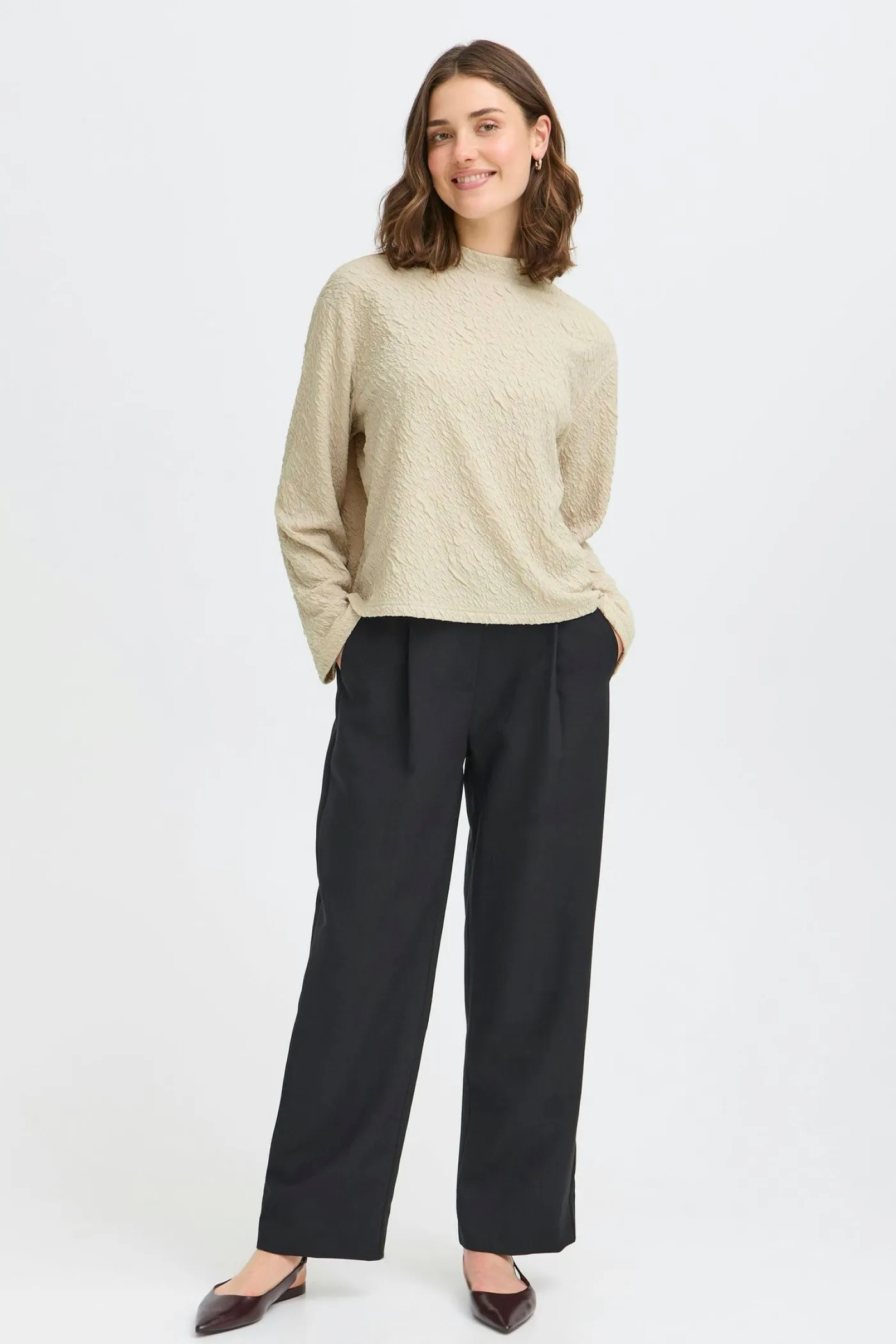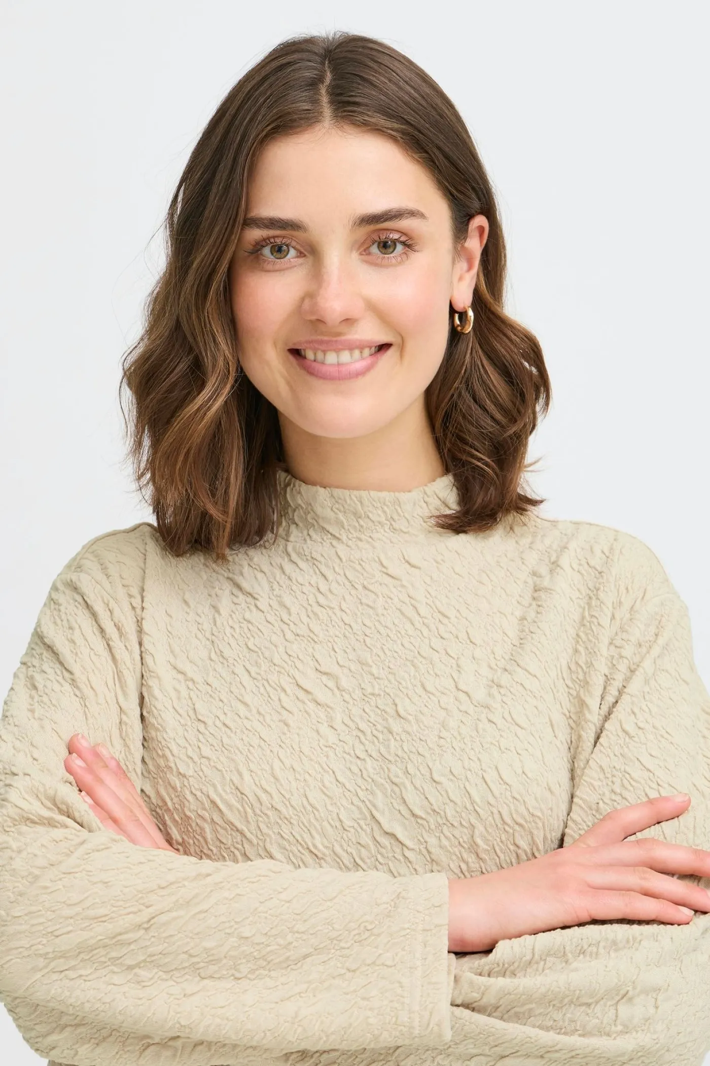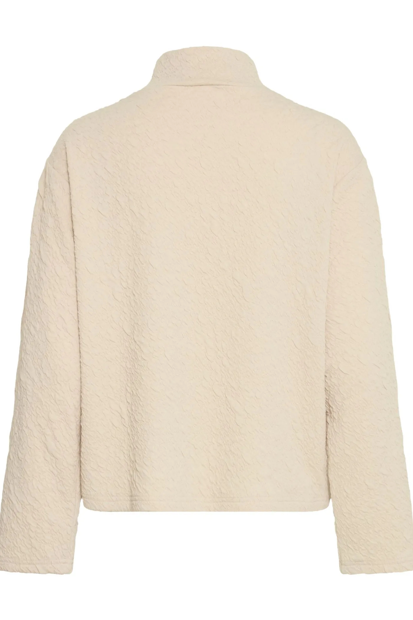 Deze beige sweater biedt zowel comfort als stijl, met een subtiele maar opvallende structuur die in de stof is verwerkt. De unieke textuur geeft de trui een moderne uitstraling, terwijl de zachte beige kleur een tijdloze en veelzijdige basis biedt. Het materiaal zorgt voor optimaal draagcomfort, waardoor deze sweater perfect is voor dagelijks gebruik. De gestructureerde stof maakt de sweater een geweldige keuze voor zowel casual als smart-casual outfits, ideaal voor een verfijnde, comfortabele look.