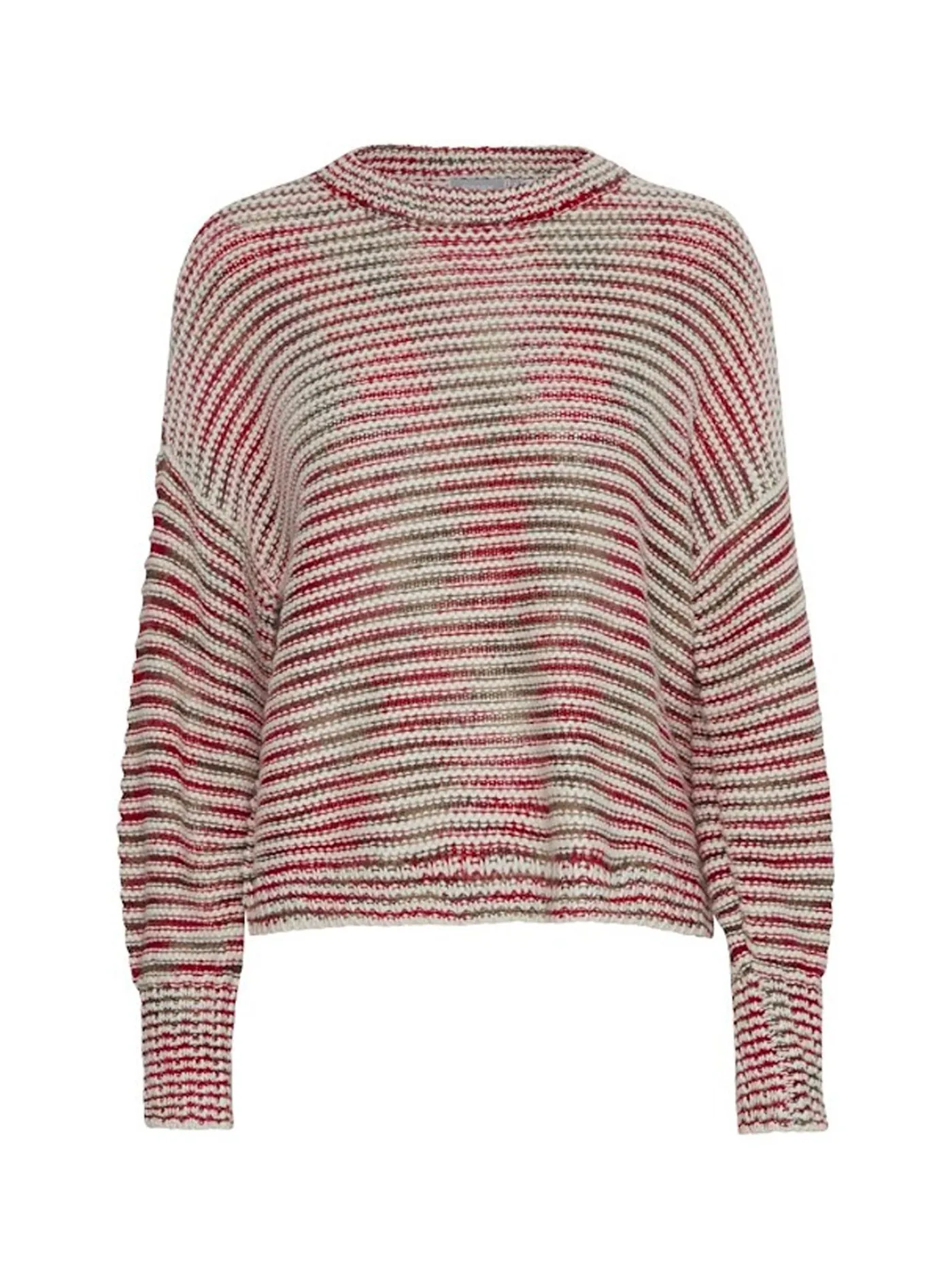 Gebreide multicolor trui van het merk Fransa. De trui is voorzien van een ronde halslijn en lange mouwen. Dit item heeft een streeppatroon met verschillende tinten roze en rood.