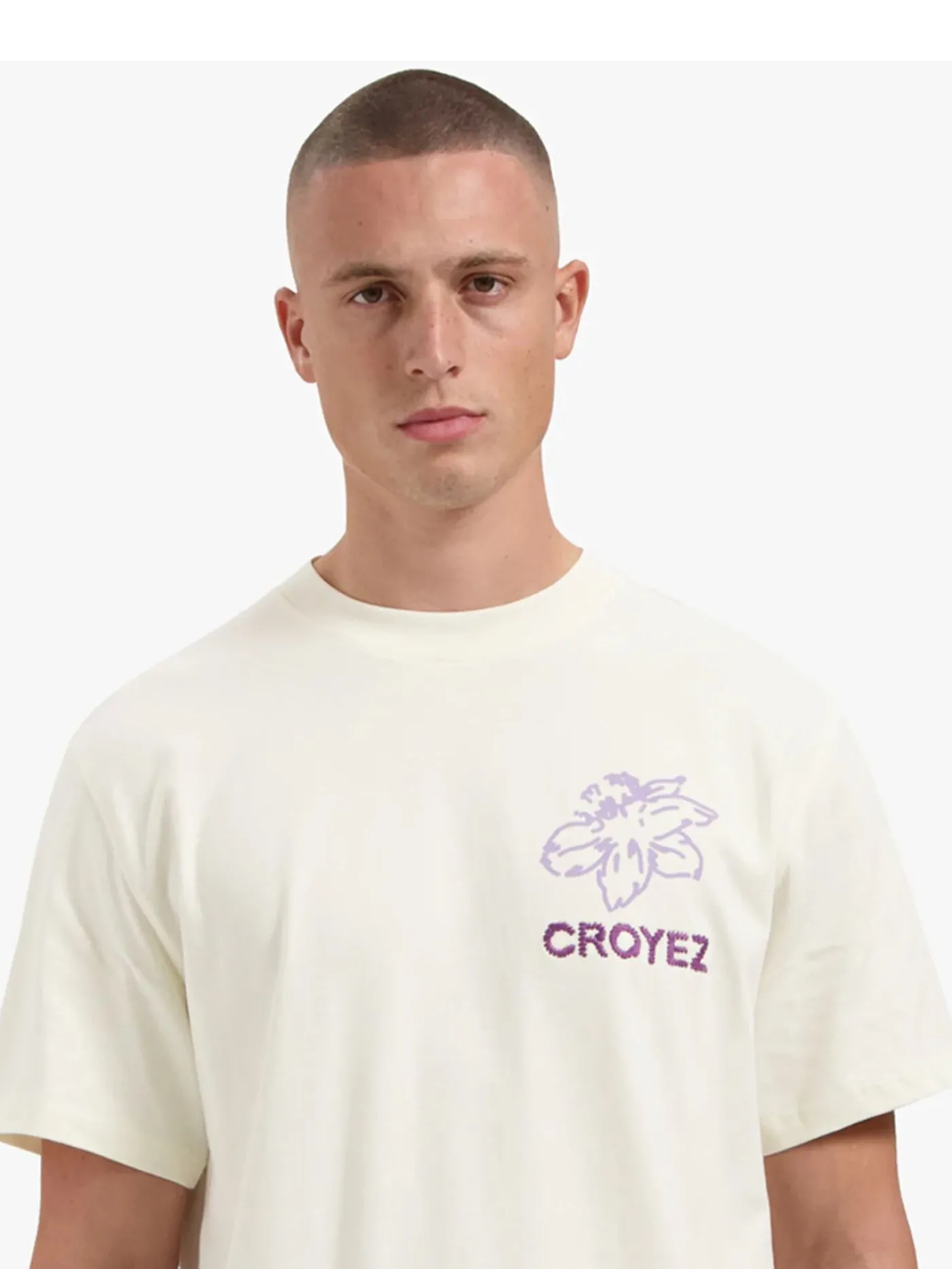 Dit gebroken witte T-shirt van Croyez is een stijlvolle basic met een moderne twist. Op de linker borst staat een subtiel paars logo, terwijl de rug is voorzien van een grotere logoprint voor een opvallend accent. Het shirt heeft een regular fit en is gemaakt van zachte katoenkwaliteit voor optimaal draagcomfort. Dankzij de neutrale kleur is het eenvoudig te combineren met elke outfit. Een veelzijdig item dat zowel casual als streetwear gedragen kan worden.