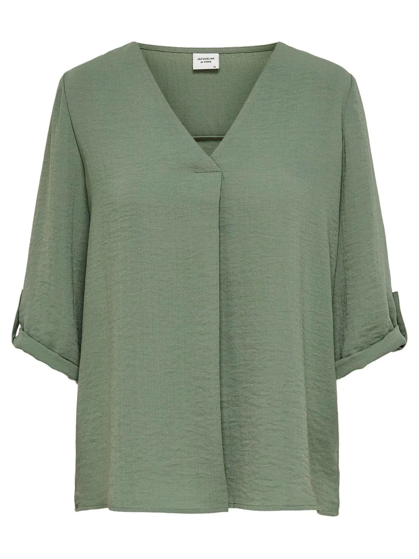 Deze mooie blouse van JDY in een groene kleur is heerlijk luchtig en comfortabel. Het driekwart mouwtje met knoopje geeft een leuk detail aan de blouse. Combineer de blouse met een leuke jeans voor een casual look!