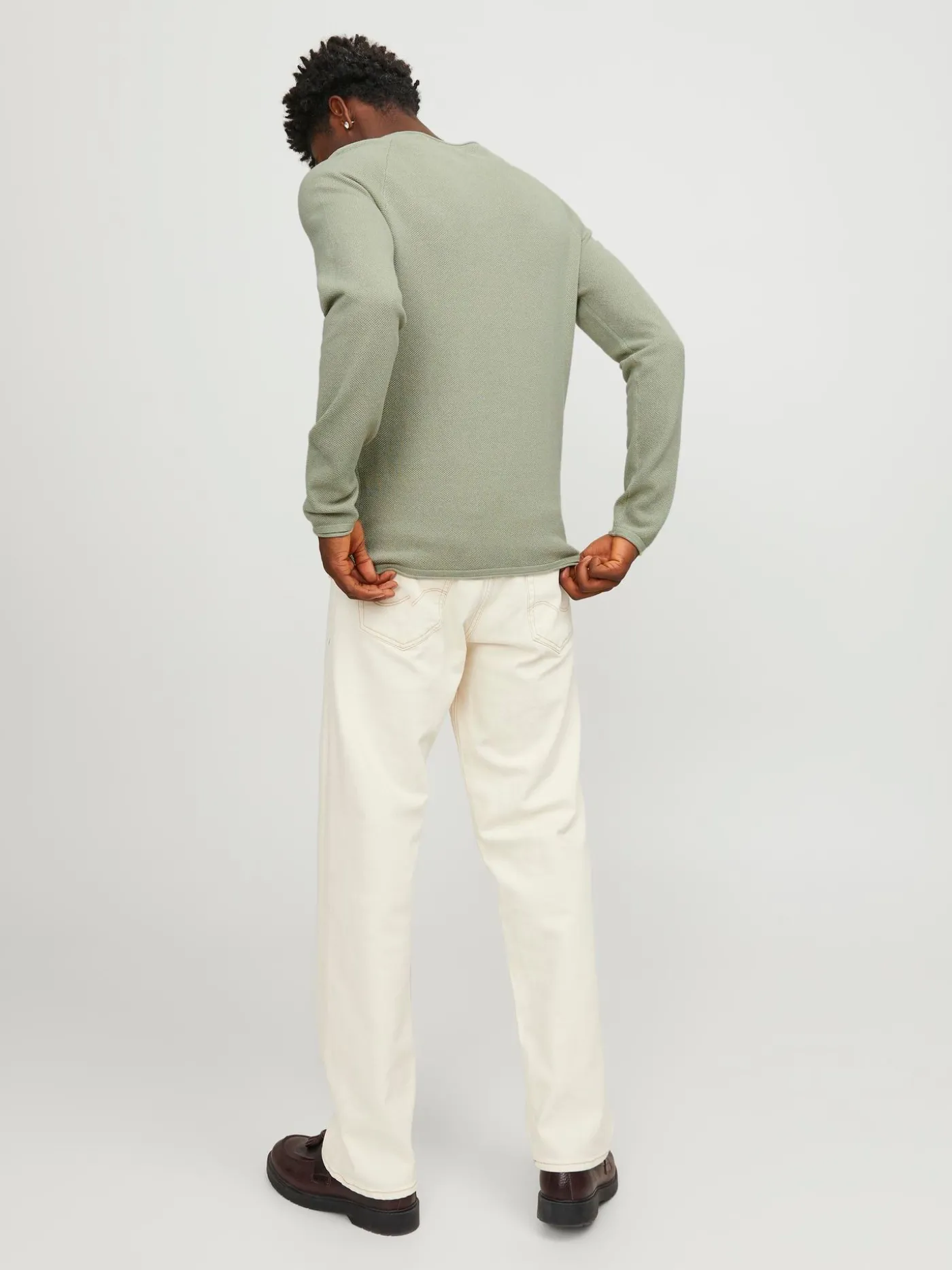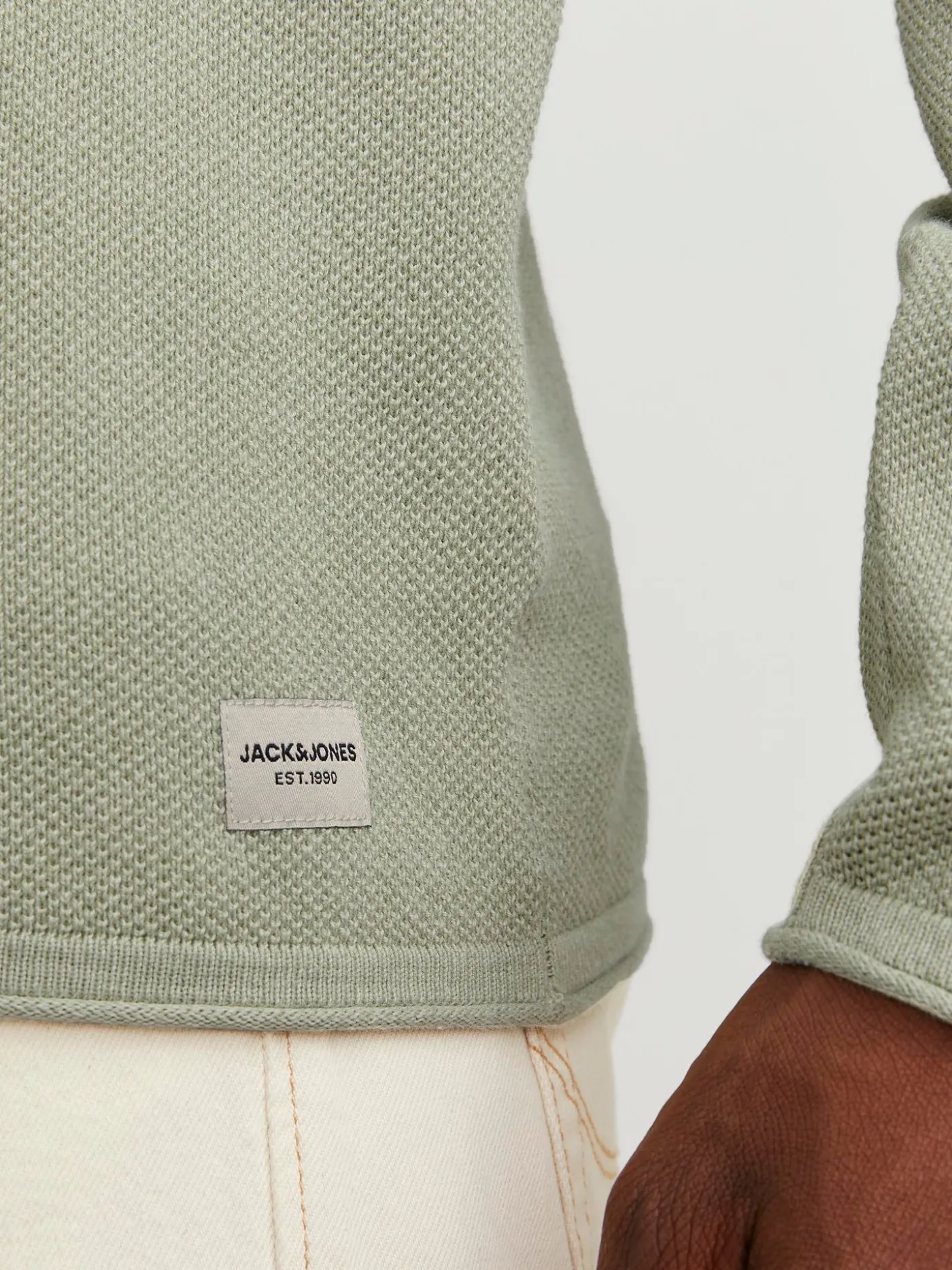 Klassieke pullover in een egale lichtgroene kleur van het merk Jack & Jones. De trui is gebreid, heeft lange mouwen en een ronde hals. De ideale basic trui die je makkelijk aantrekt en goed te combineren is met diverse outfits.