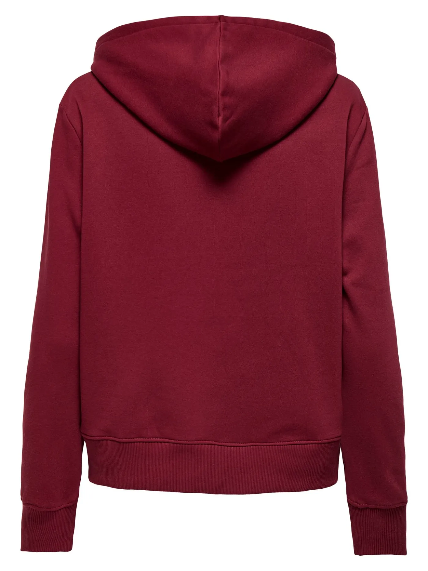 Deze meisjeshoodie van het merk ONLY (model KOGLYNA L/S DETAIL HOOD CS SWT) is uitgevoerd in een warme rode kleur (“Cabernet/Black Buttons”). Hij heeft een ronde halslijn, capuchon en lange mouwen, wat zorgt voor extra comfort en bescherming. De normale lengte en regular fit geven een ontspannen, klassieke pasvorm die ideaal is voor school‑of vrijetijdsgebruik. De zachte stof maakt ‘m heerlijk om te dragen.